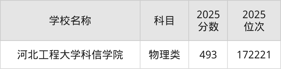 下文为2025年邯郸市民办二本大学在河北物理类录取分数线和位次排名表,供大家参考: