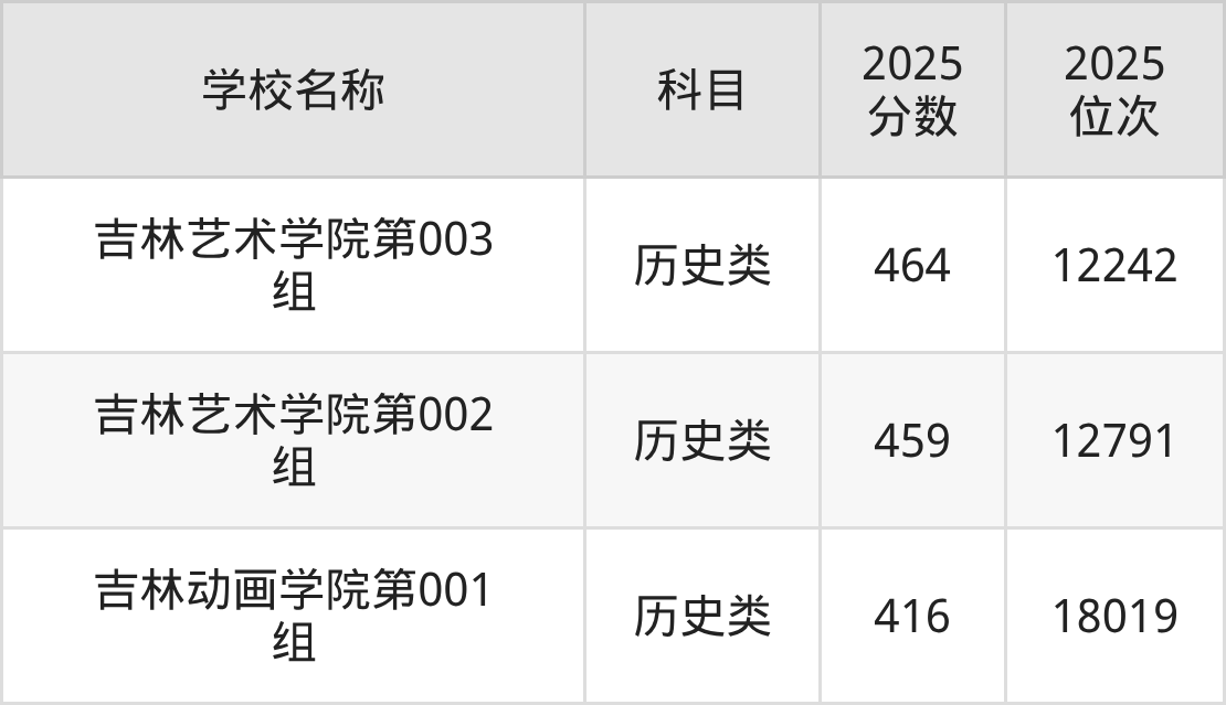 下文为2025年吉林省艺术类大学在吉林历史类录取分数线和位次排名表,供大家参考: