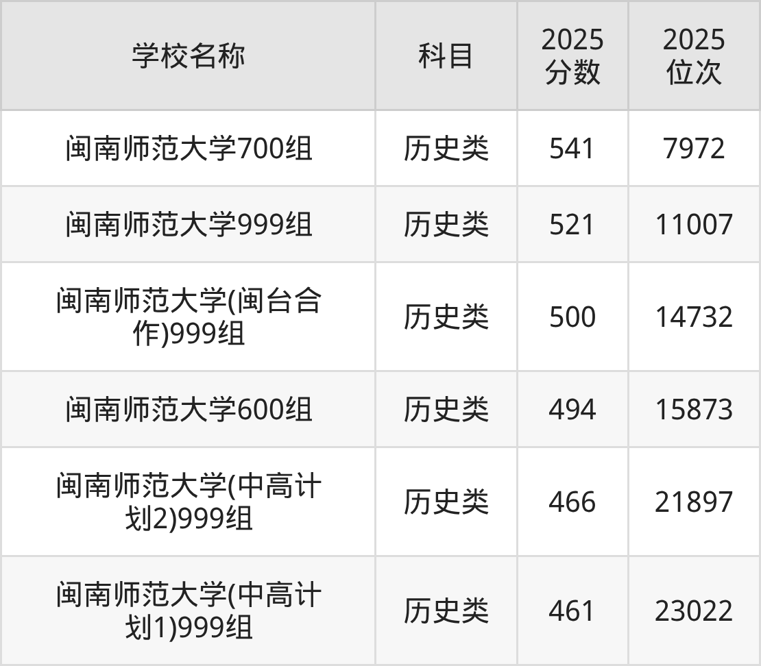 下文为2025年漳州市一本大学在福建历史类录取分数线和位次排名表,供大家参考: