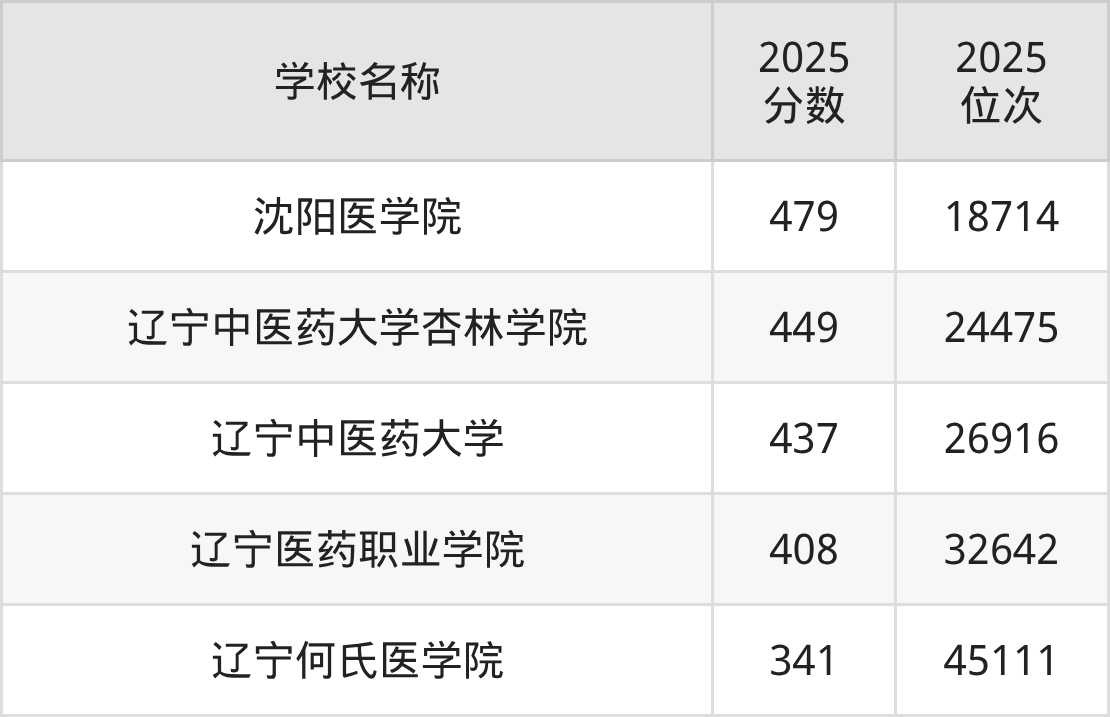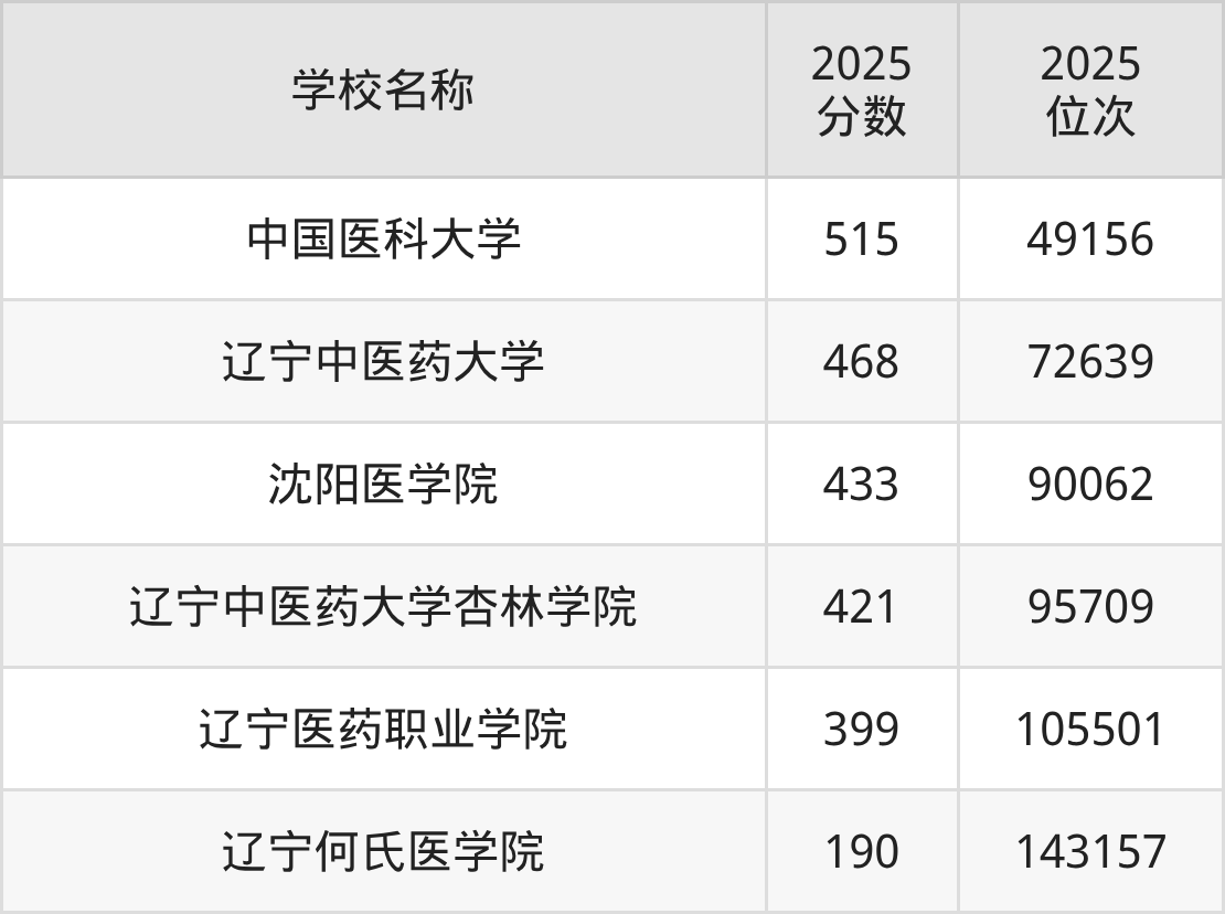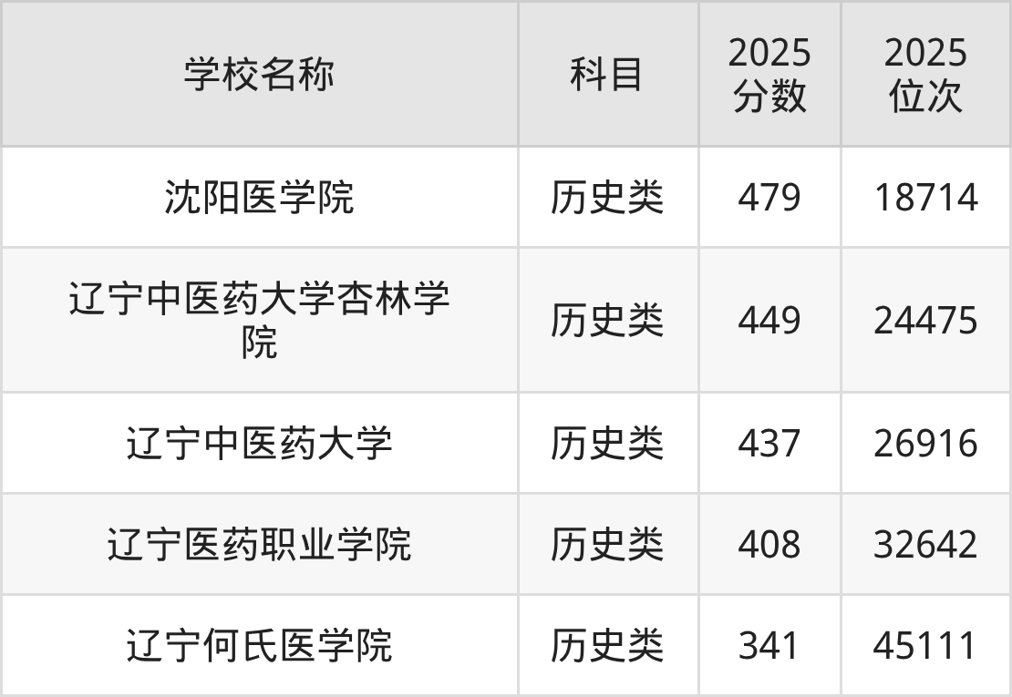 下文为2025年沈阳市医科大学在辽宁历史类录取分数线和位次排名表,供大家参考: