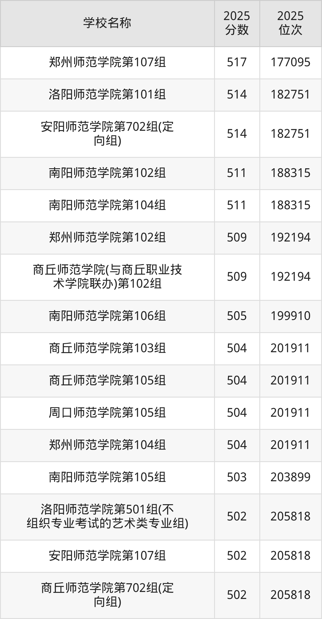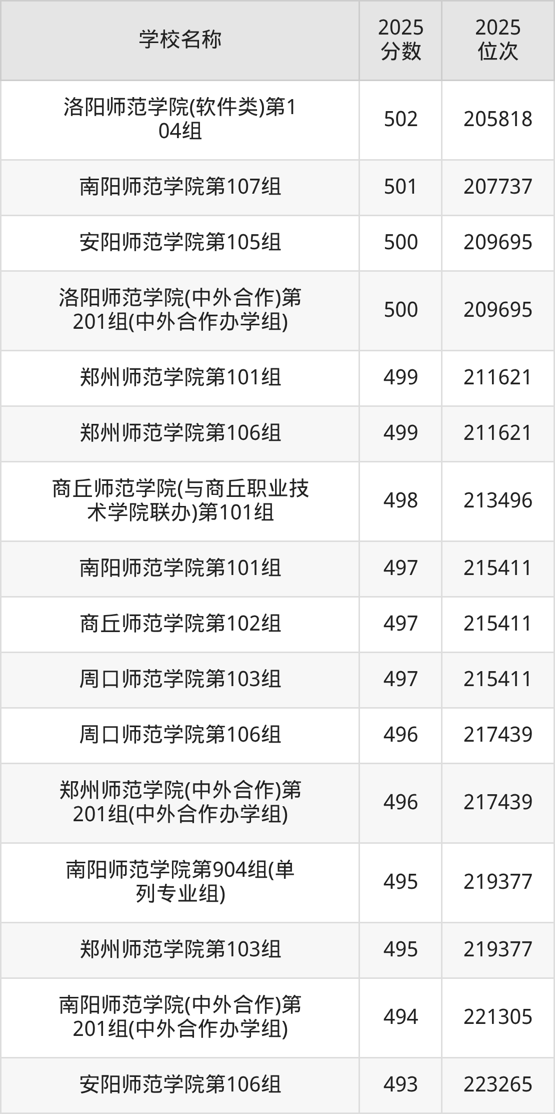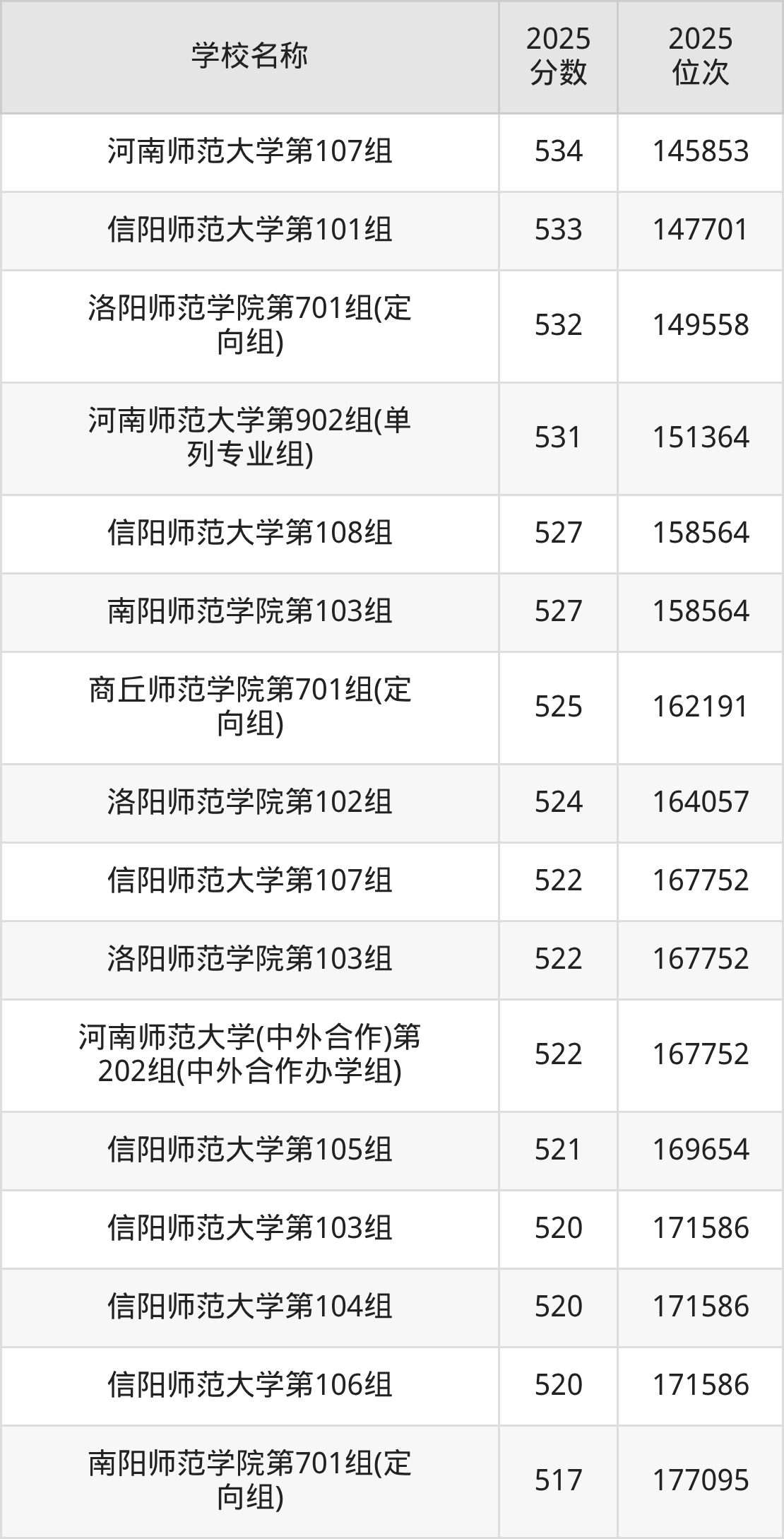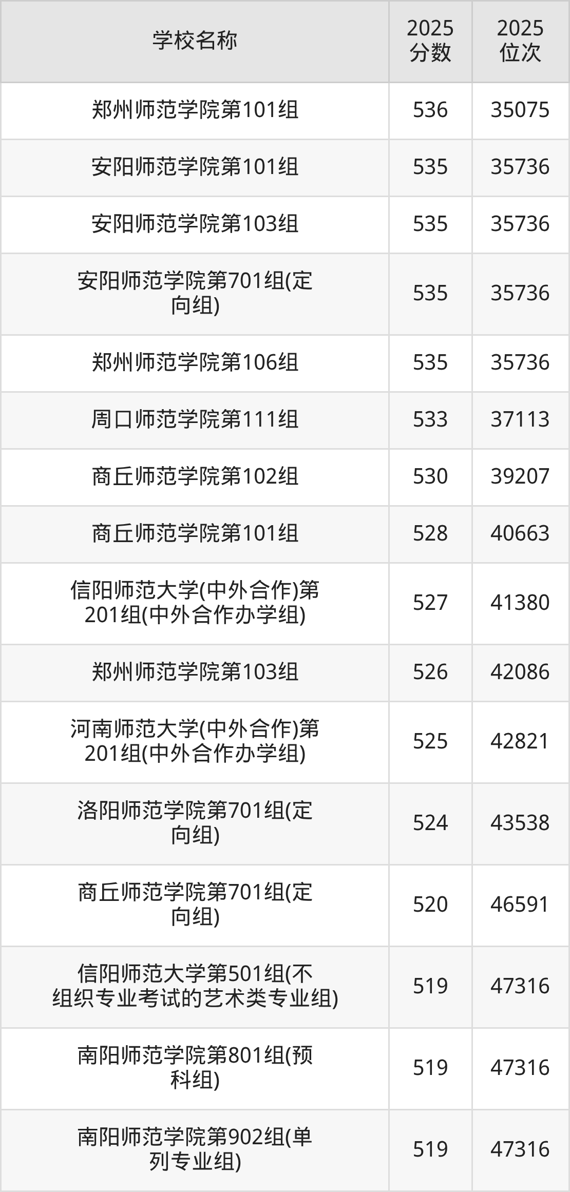 下文为2025年河南省师范类大学在河南历史类录取分数线和位次排名表,供大家参考:
