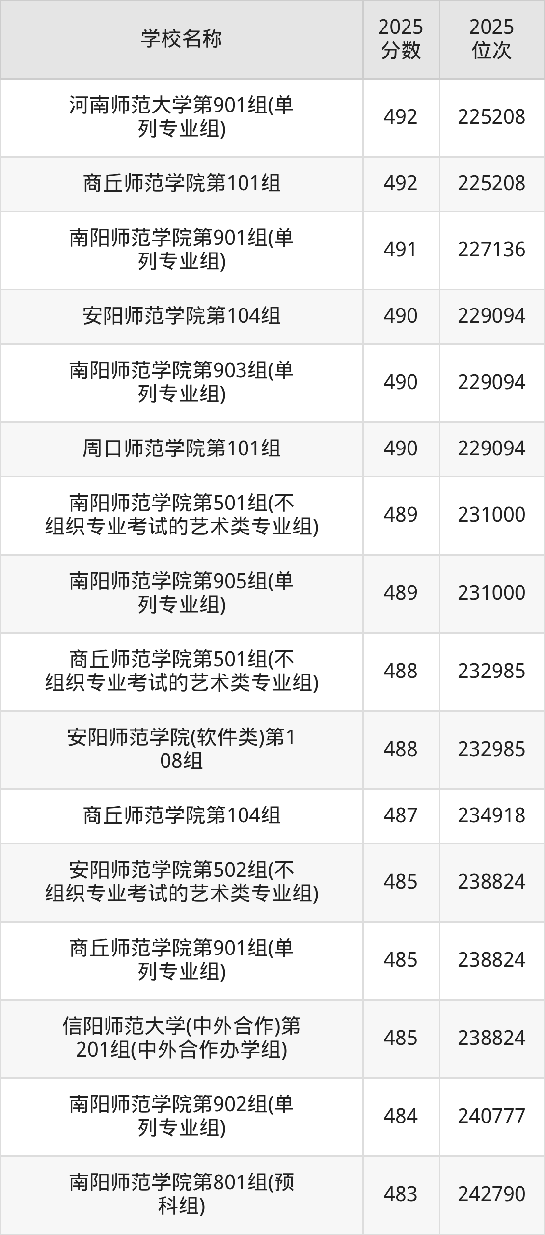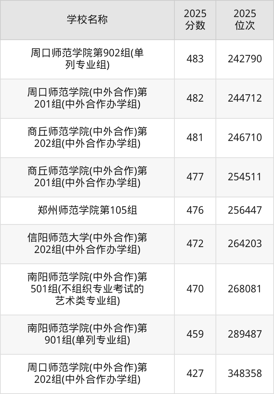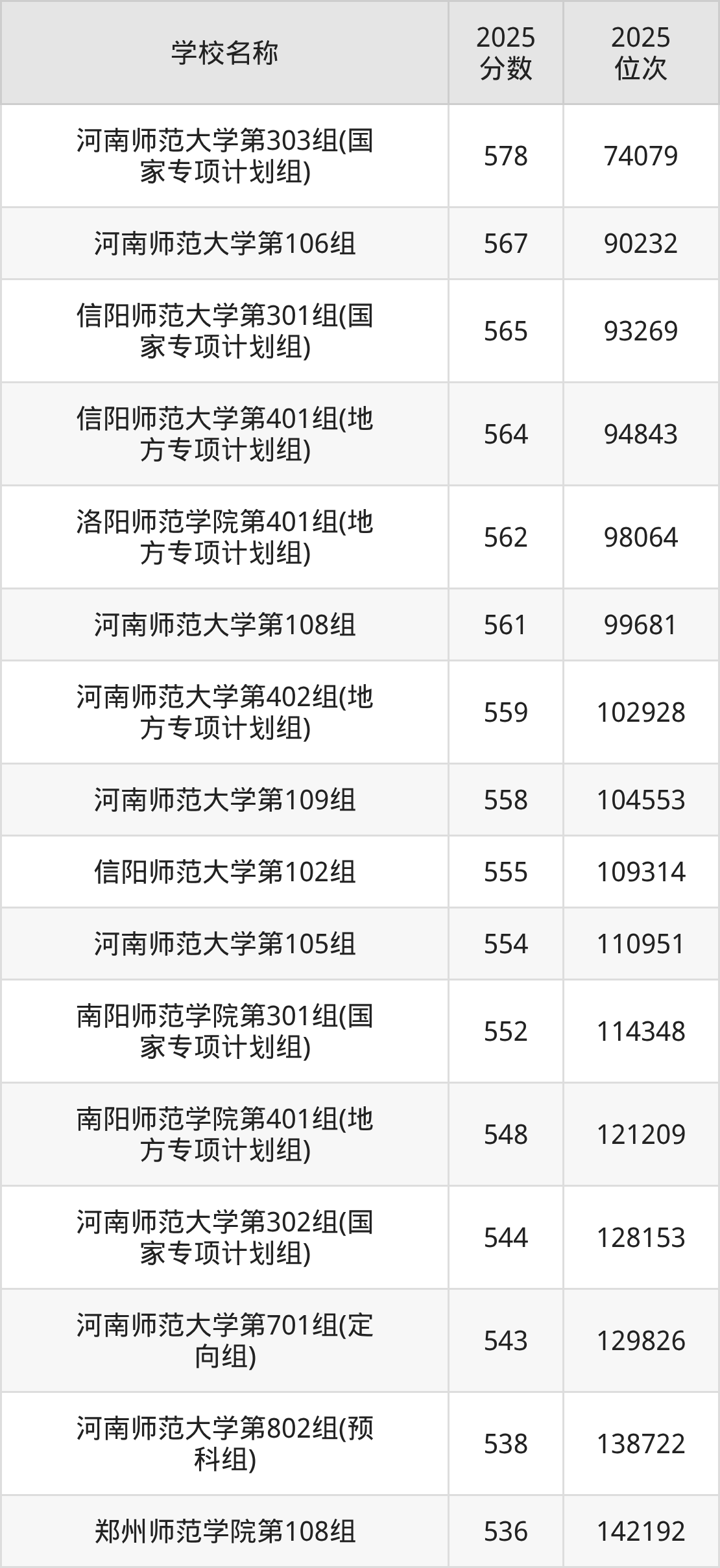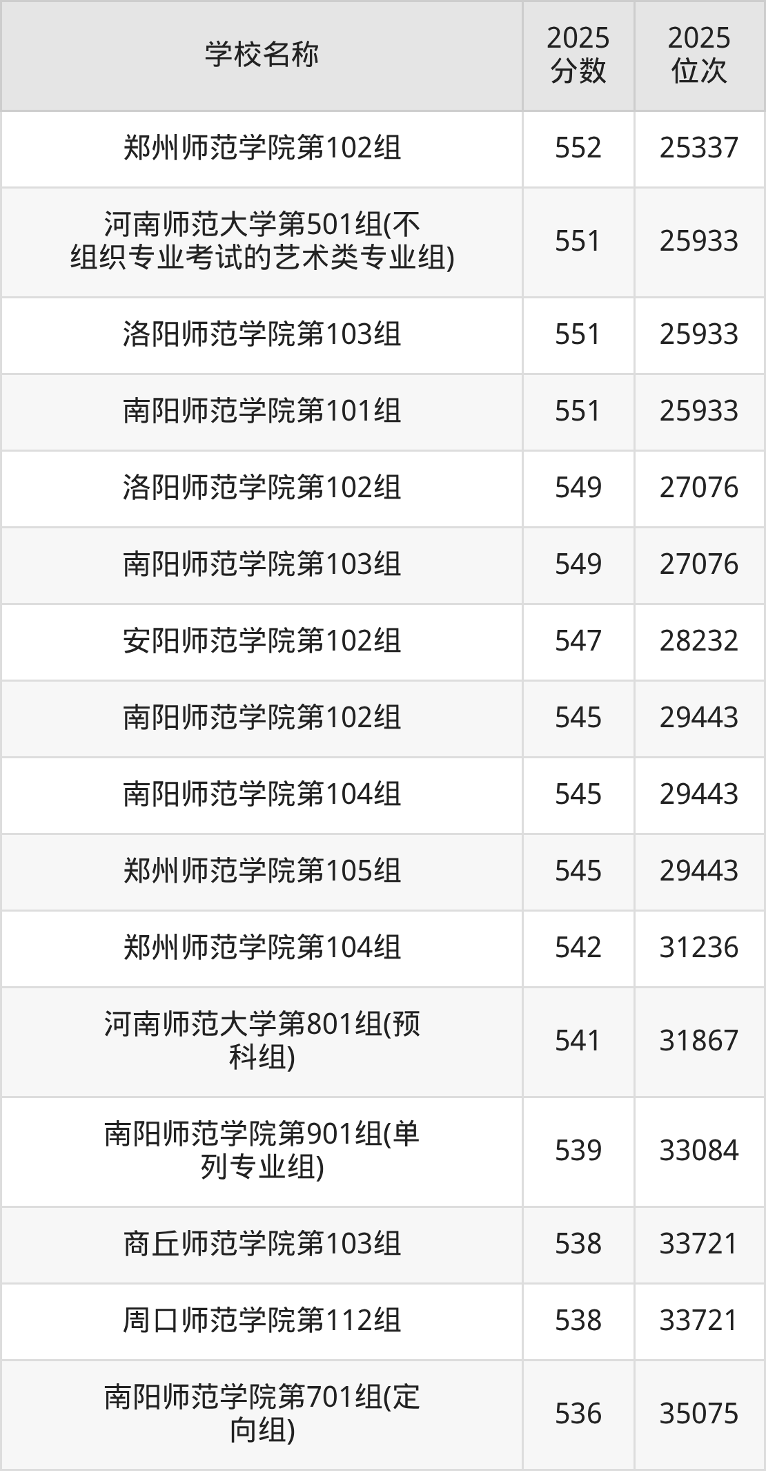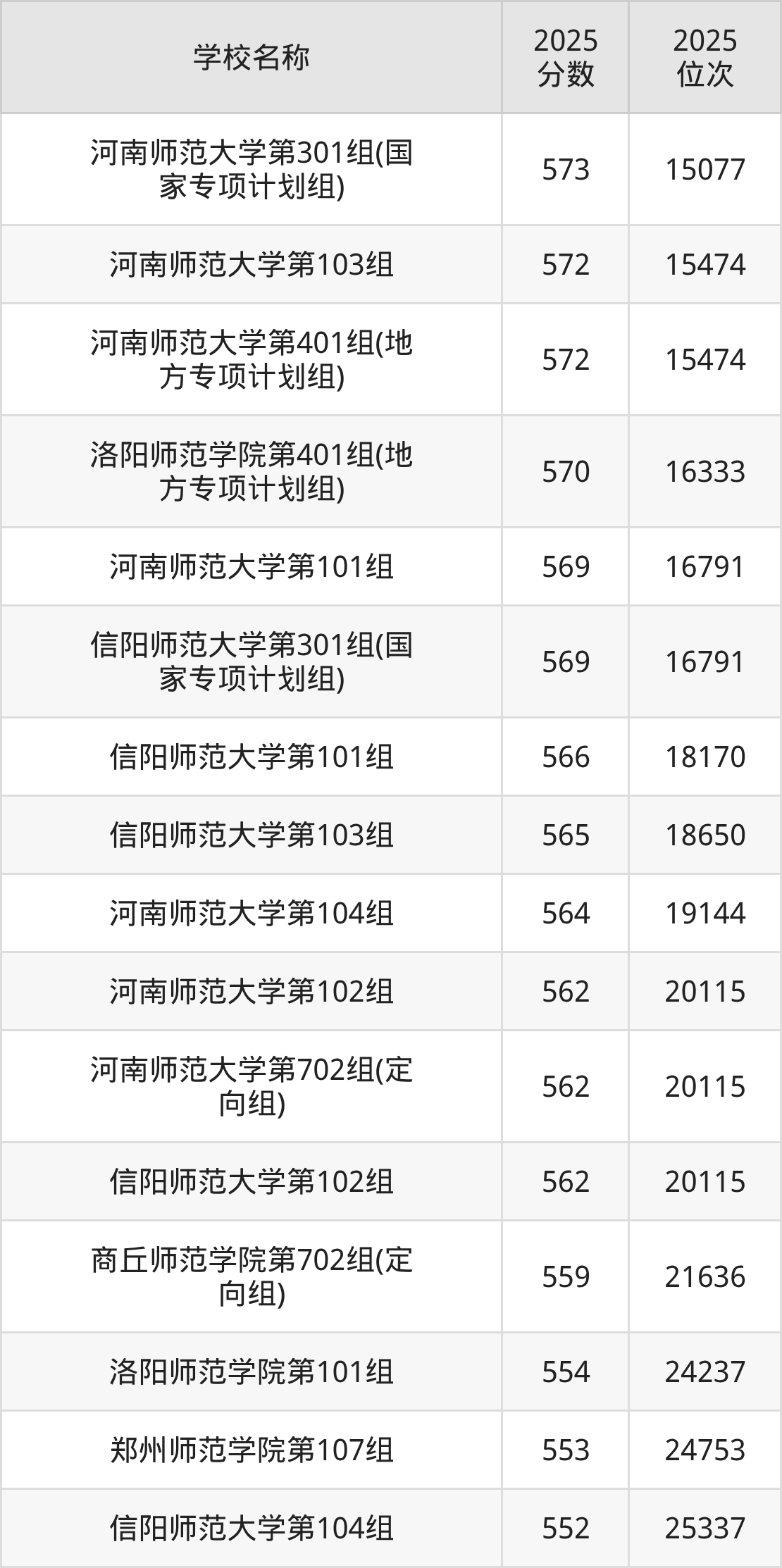 下文为2025年河南省师范类大学在河南历史类录取分数线和位次排名表,供大家参考: