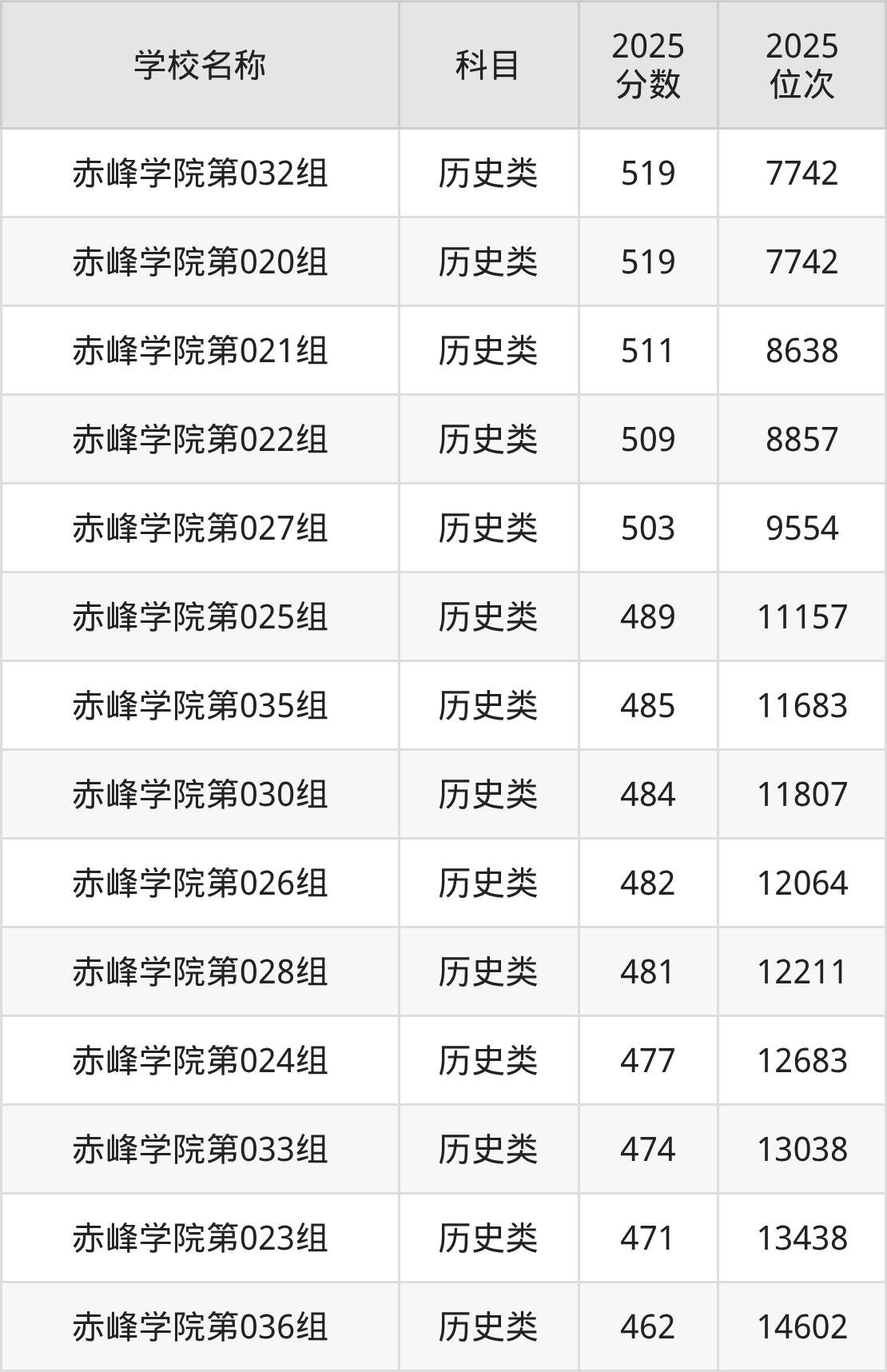 下文为2025年赤峰市本科大学在内蒙古历史类录取分数线和位次排名表,供大家参考: