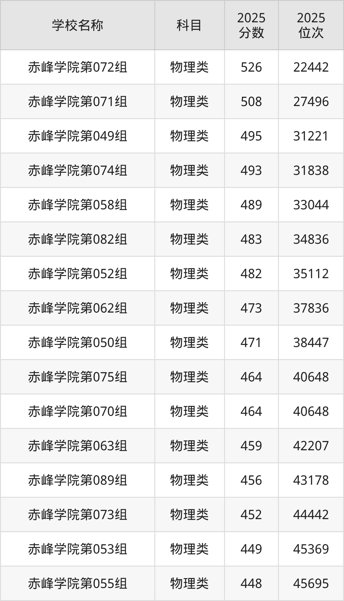 下文为2025年赤峰市本科大学在内蒙古物理类录取分数线和位次排名表,供大家参考: