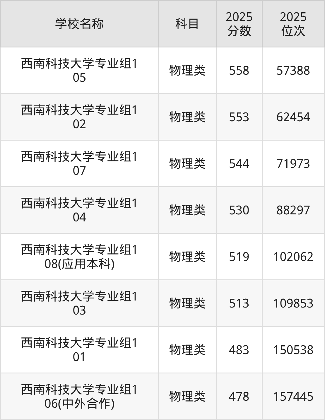 | 202 | 西南科技大学 |