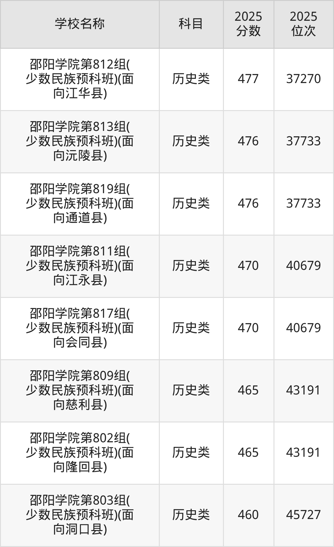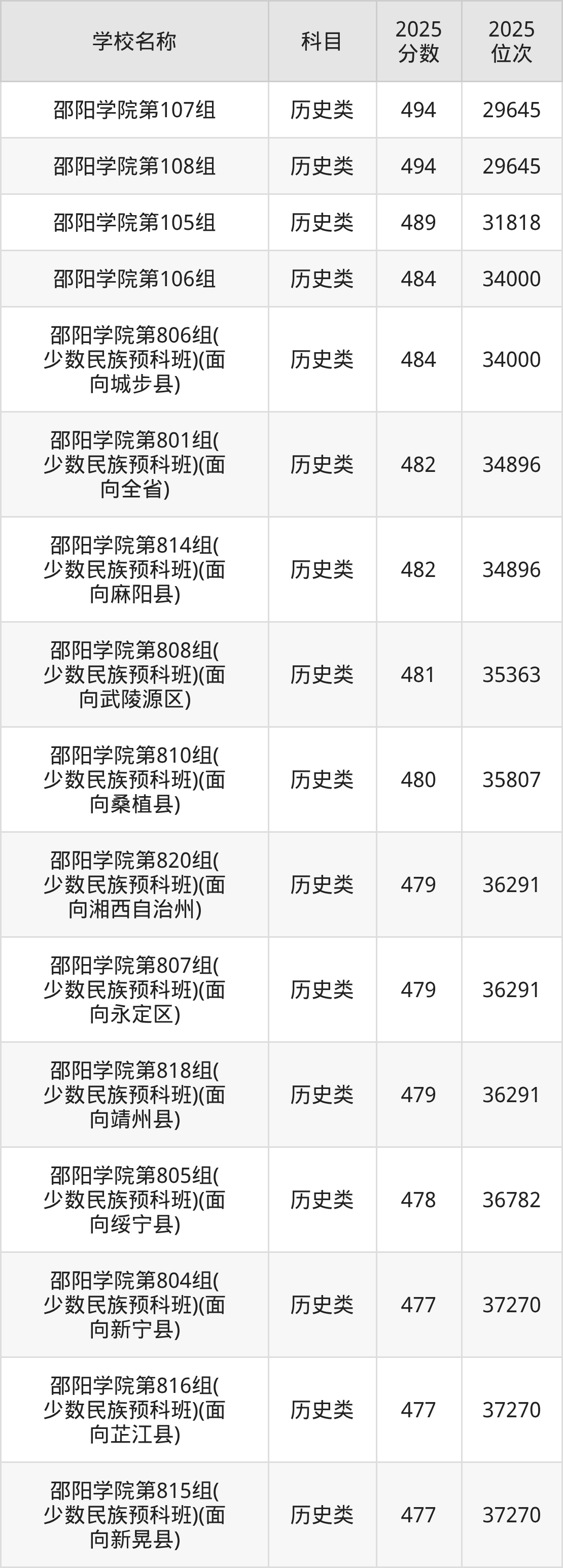 下文为2025年邵阳市本科大学在湖南历史类录取分数线和位次排名表,供大家参考: