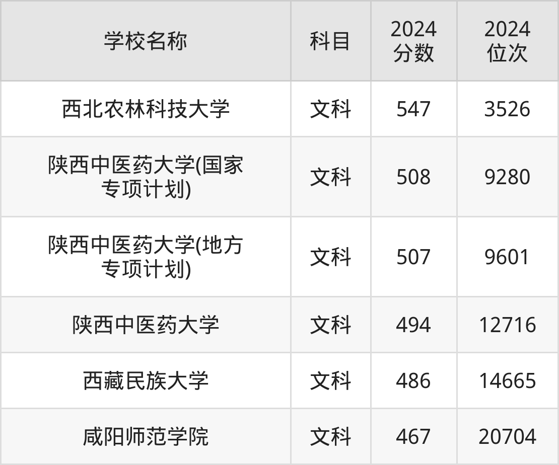 下文为2024年咸阳市一本大学在陕西文科录取分数线和位次排名表,供大家参考: