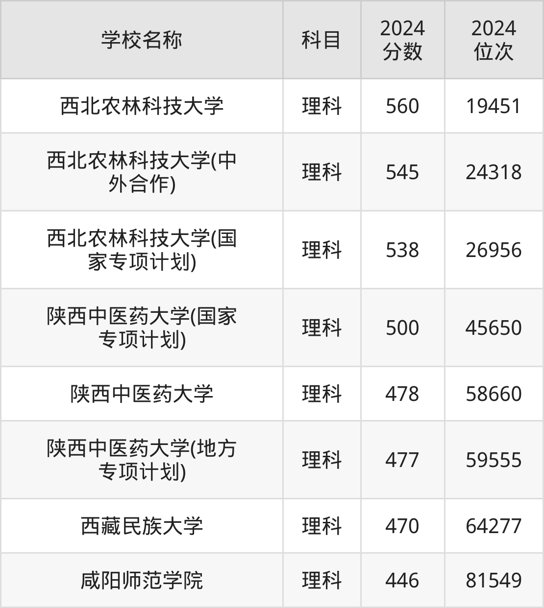 下文为2024年咸阳市一本大学在陕西理科录取分数线和位次排名表,供大家参考: