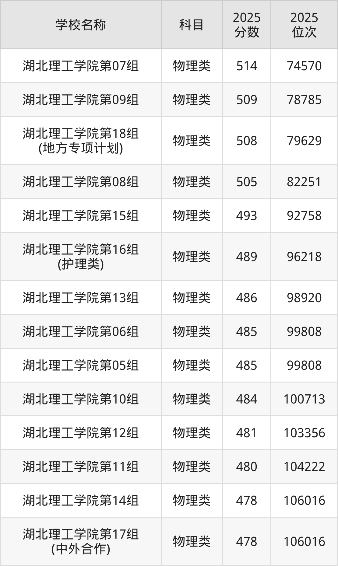 下文为2025年黄石市公办二本大学在湖北物理类录取分数线和位次排名表,供大家参考: