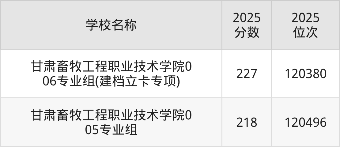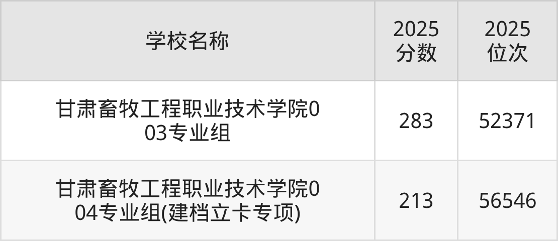 下文为2025年武威市公办专科大学在甘肃历史类录取分数线和位次排名表,供大家参考: