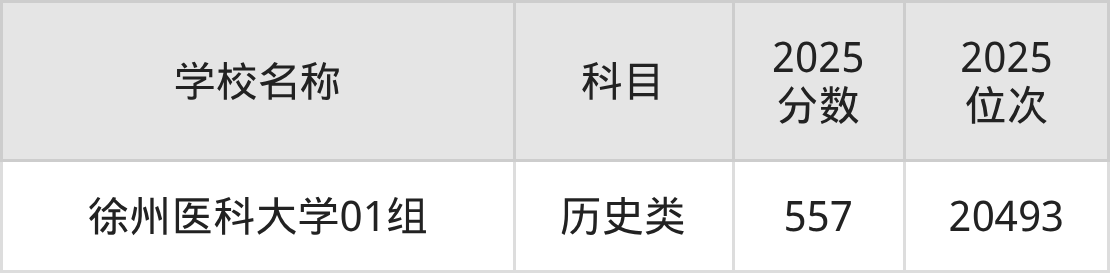 下文为2025年徐州市医科大学在江苏历史类录取分数线和位次排名表,供大家参考: