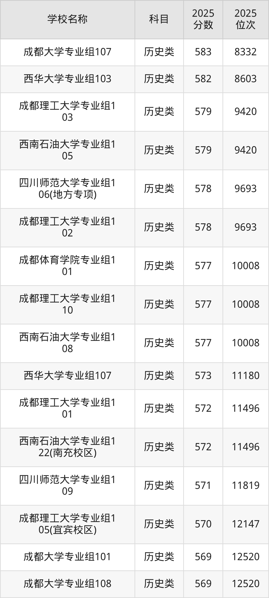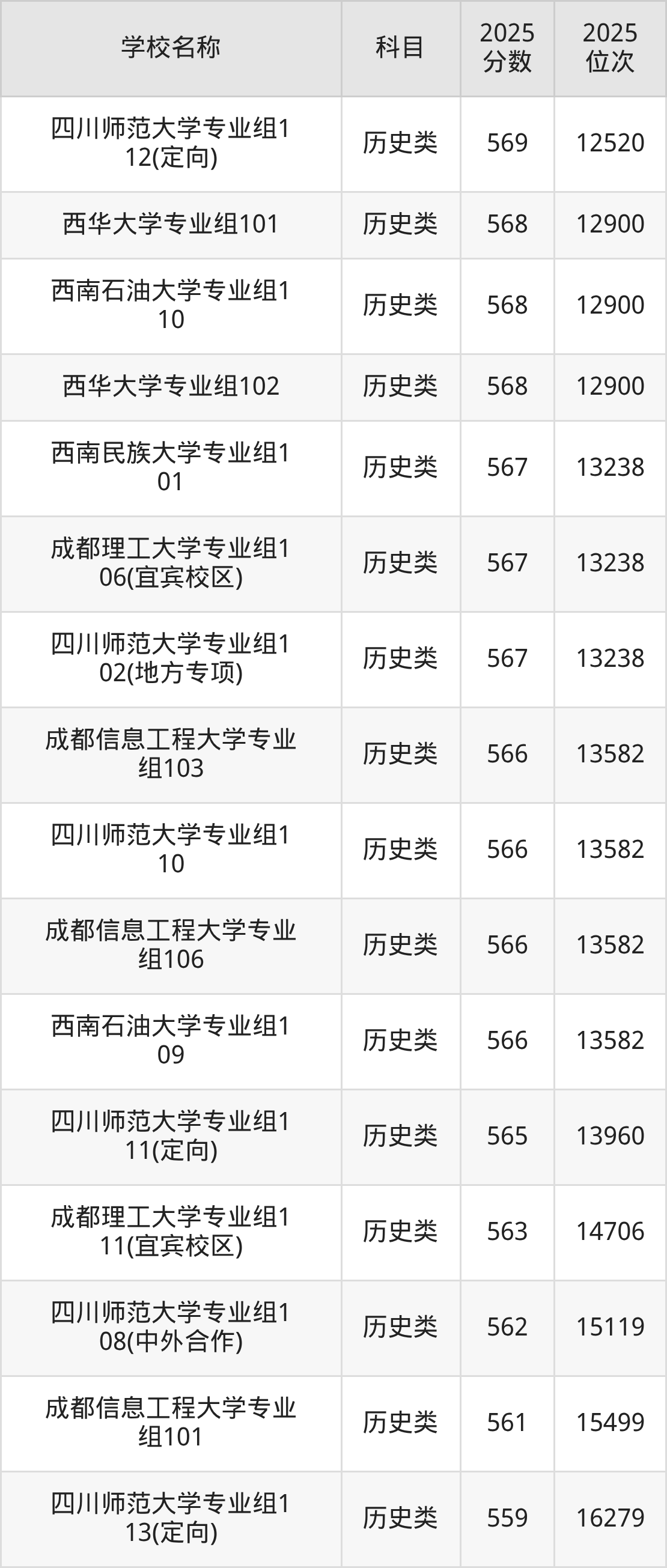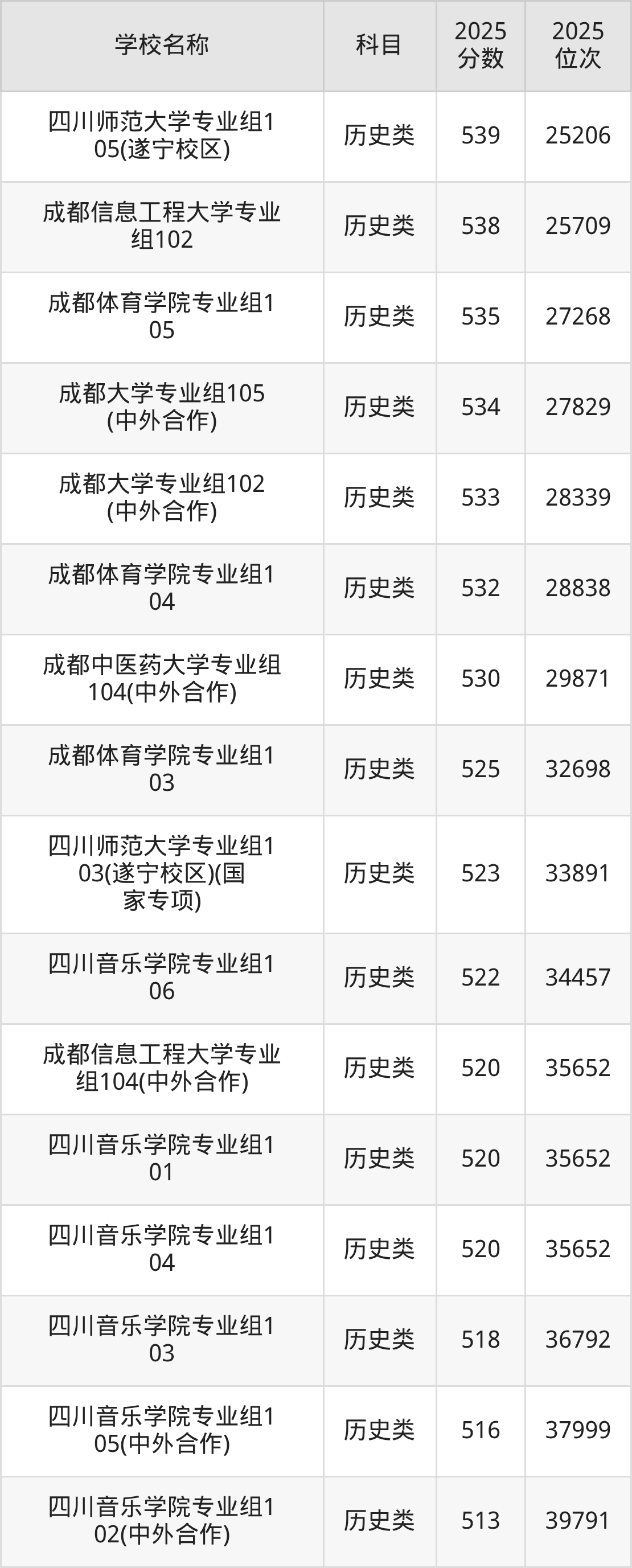下文为2025年成都市含保研资格的大学在四川历史类录取分数线和位次排名表,供大家参考: