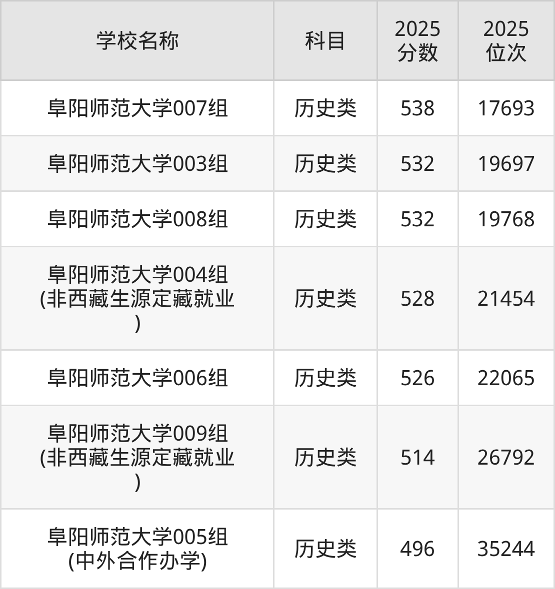 下文为2025年阜阳市一本大学在安徽历史类录取分数线和位次排名表,供大家参考: