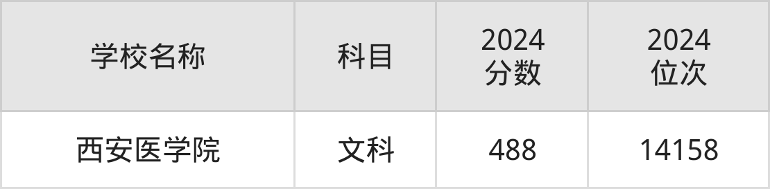 下文为2024年西安市二本医科大学在陕西文科录取分数线和位次排名表,供大家参考: