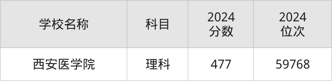 下文为2024年西安市二本医科大学在陕西理科录取分数线和位次排名表,供大家参考: