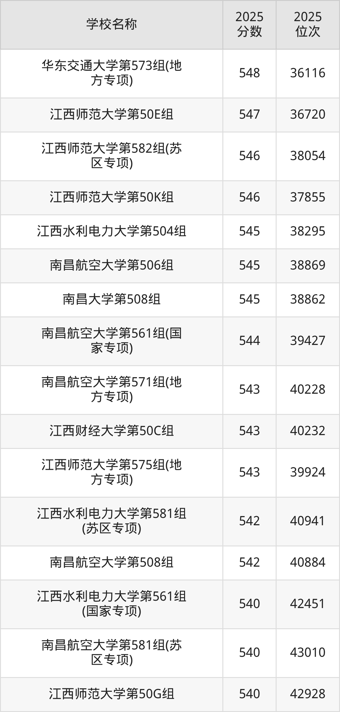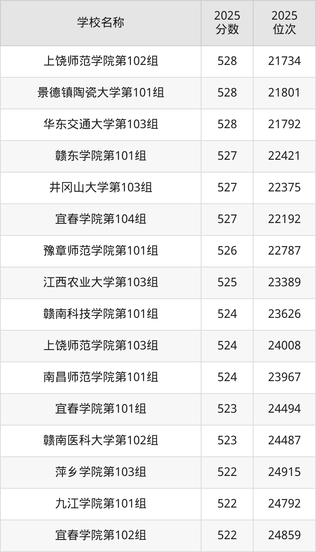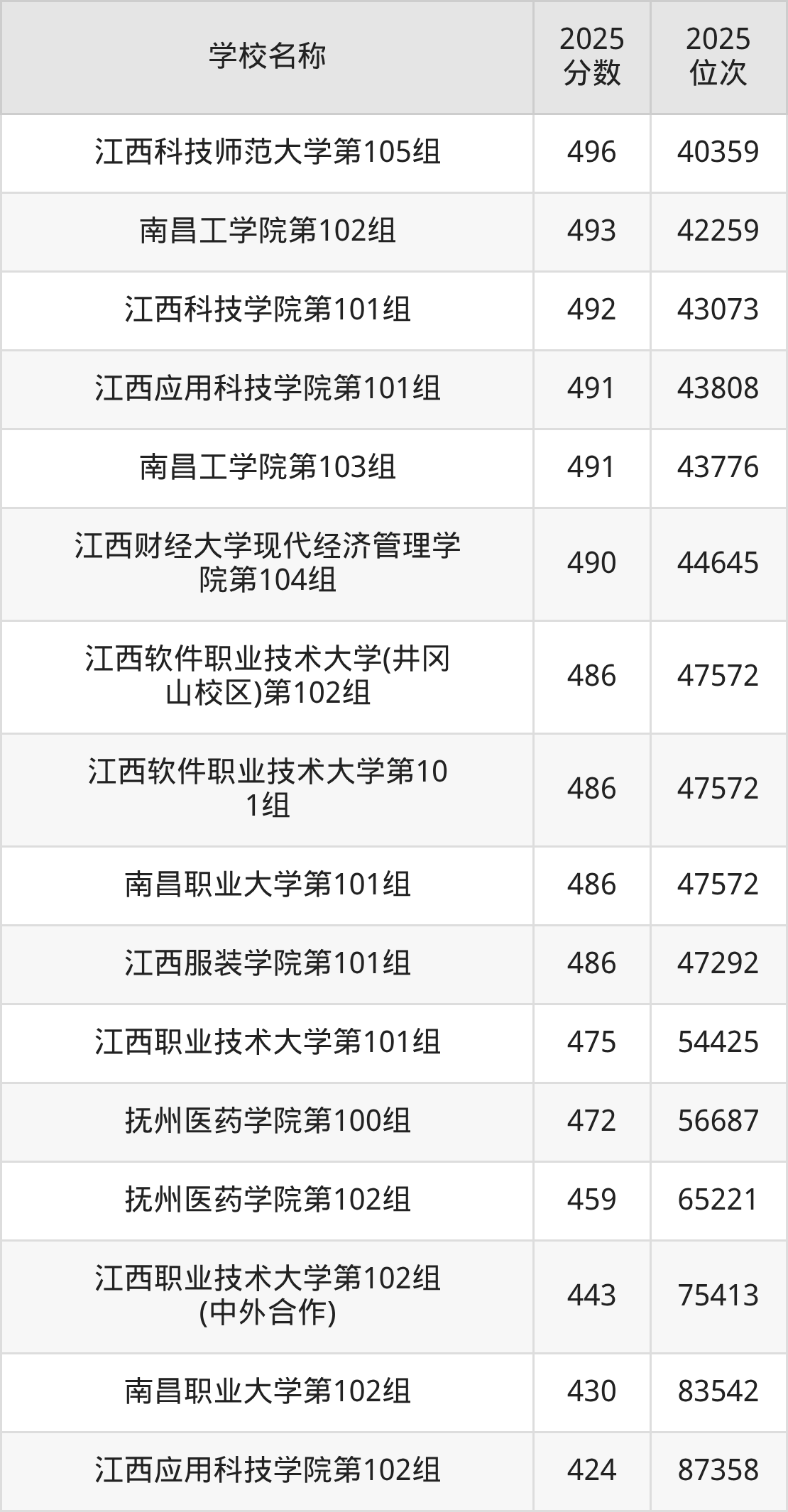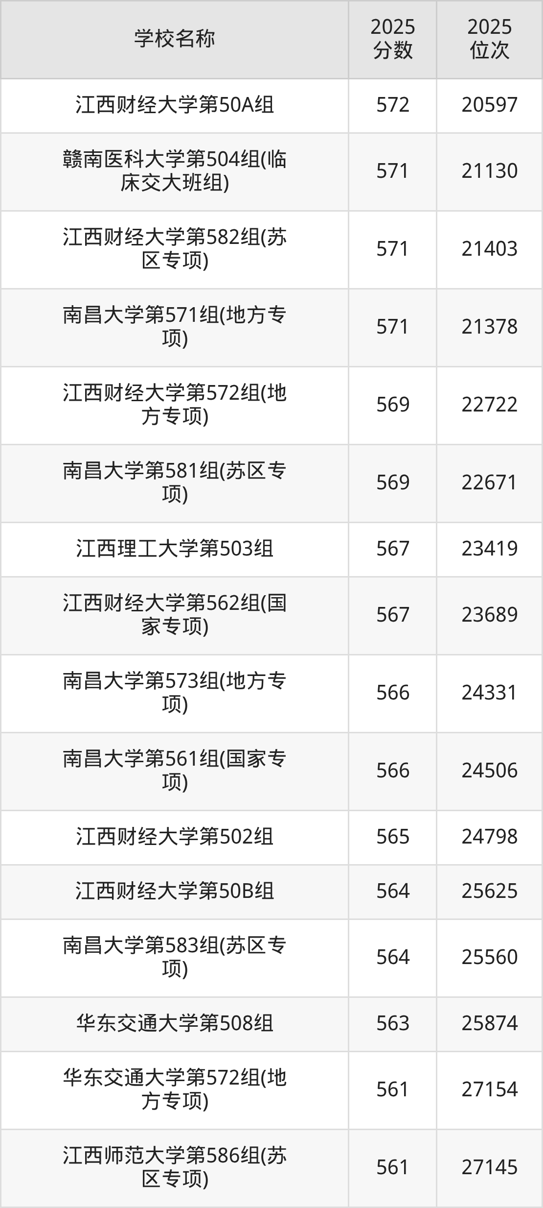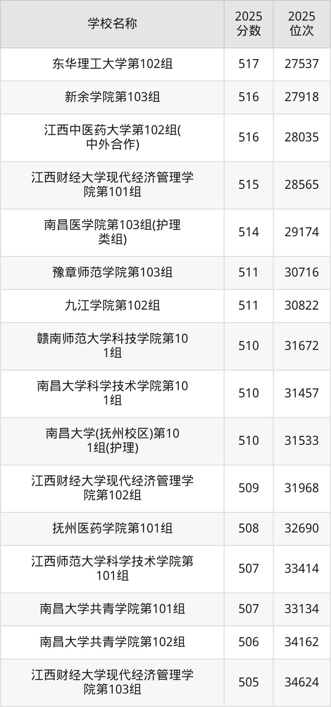 下文为2025年江西省本科大学在江西物理类录取分数线和位次排名表,供大家参考: