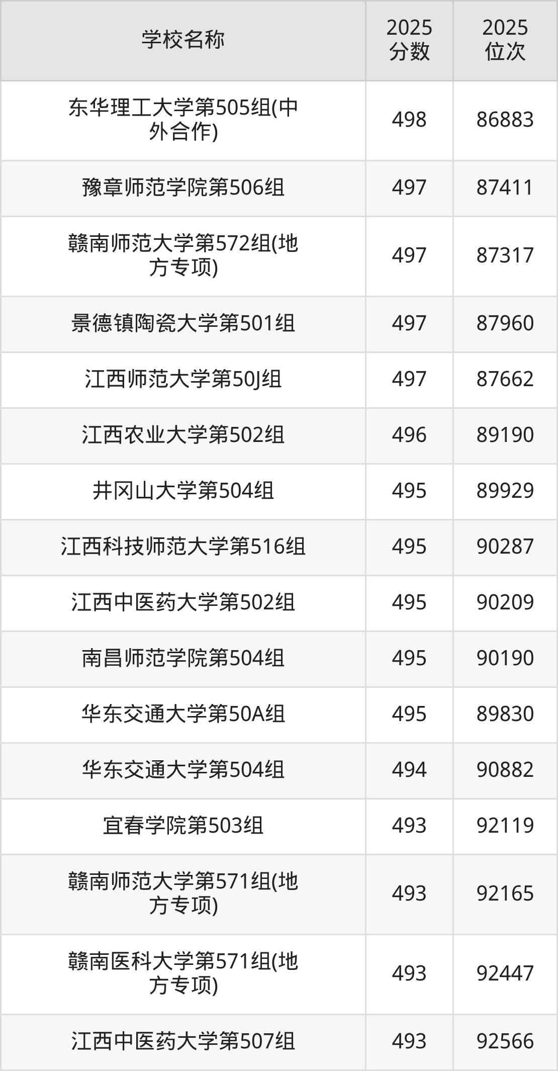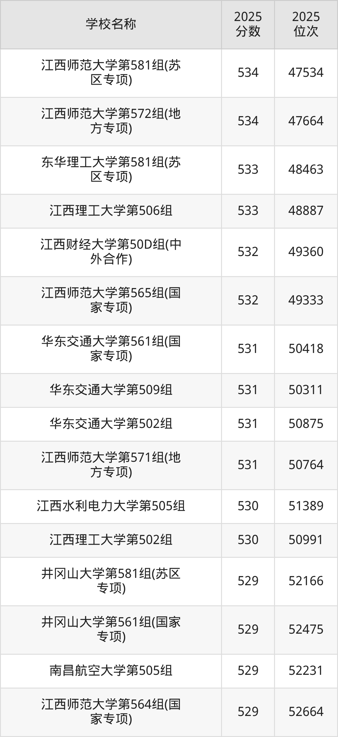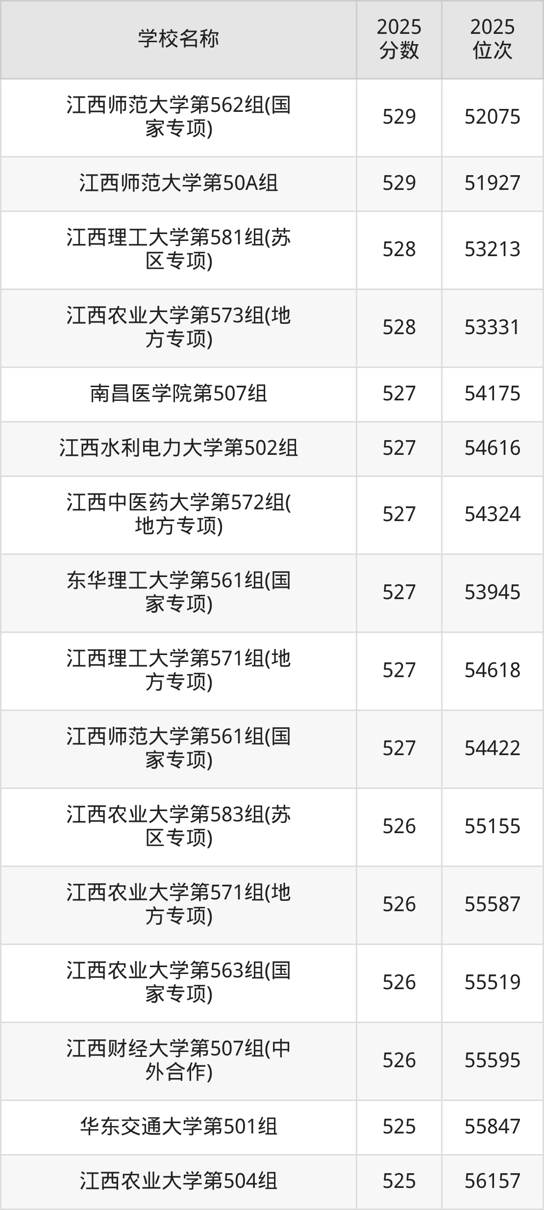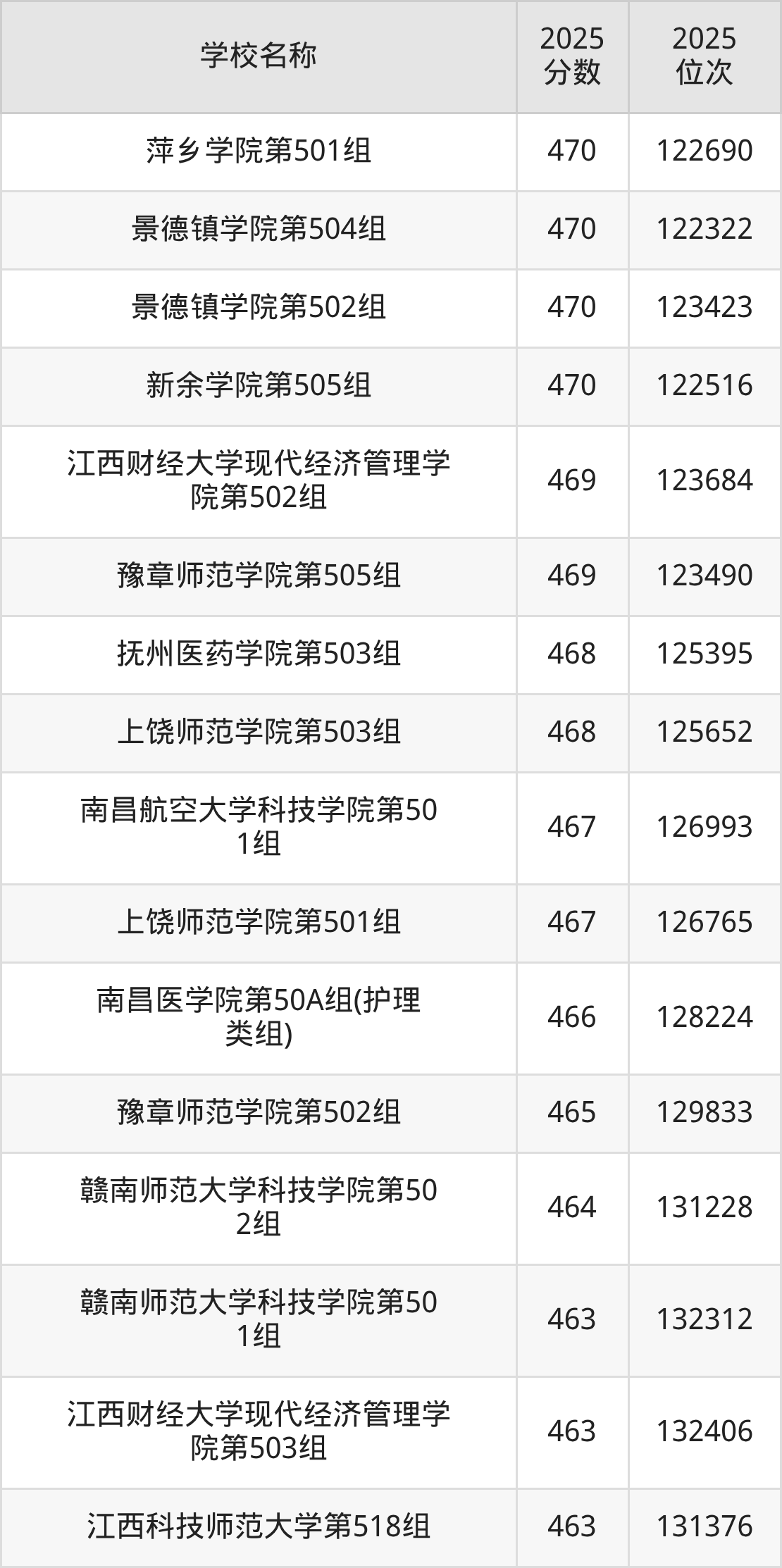 下文为2025年江西省本科大学在江西物理类录取分数线和位次排名表,供大家参考: