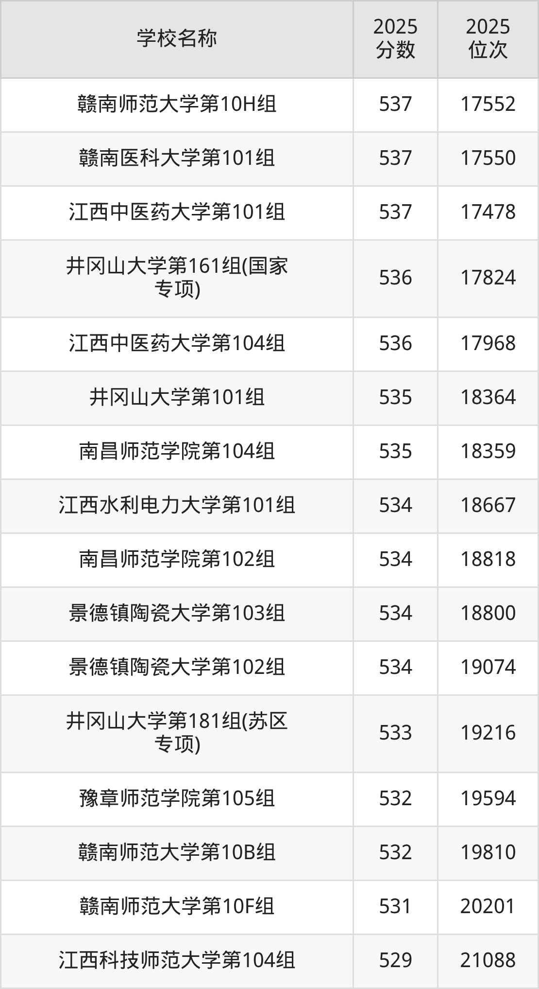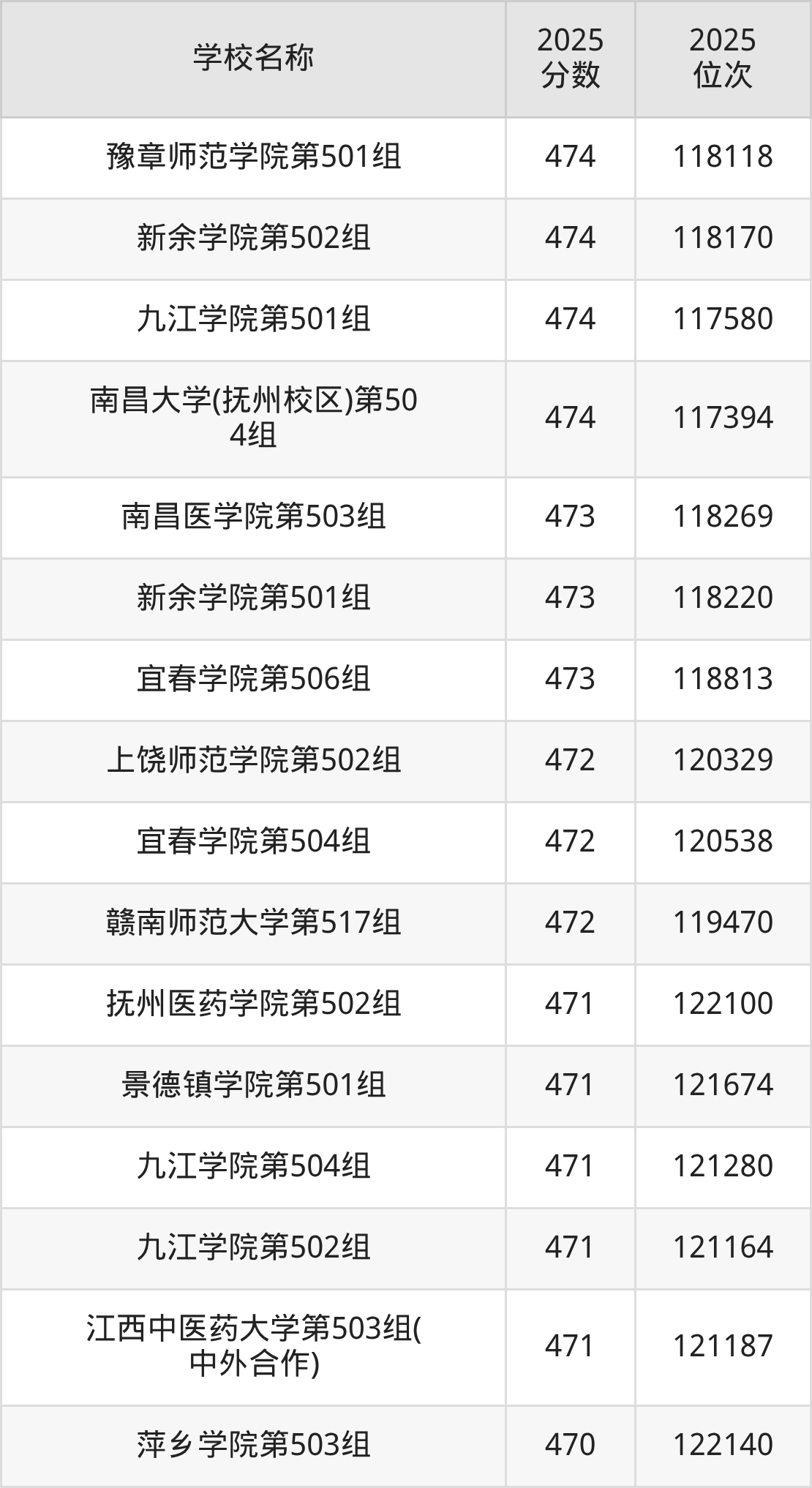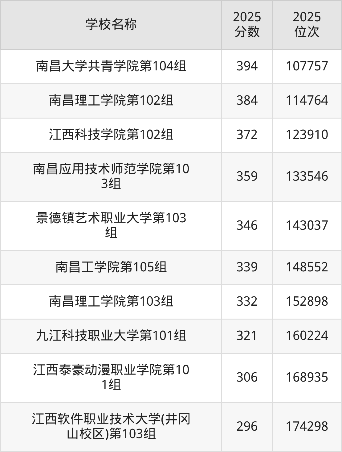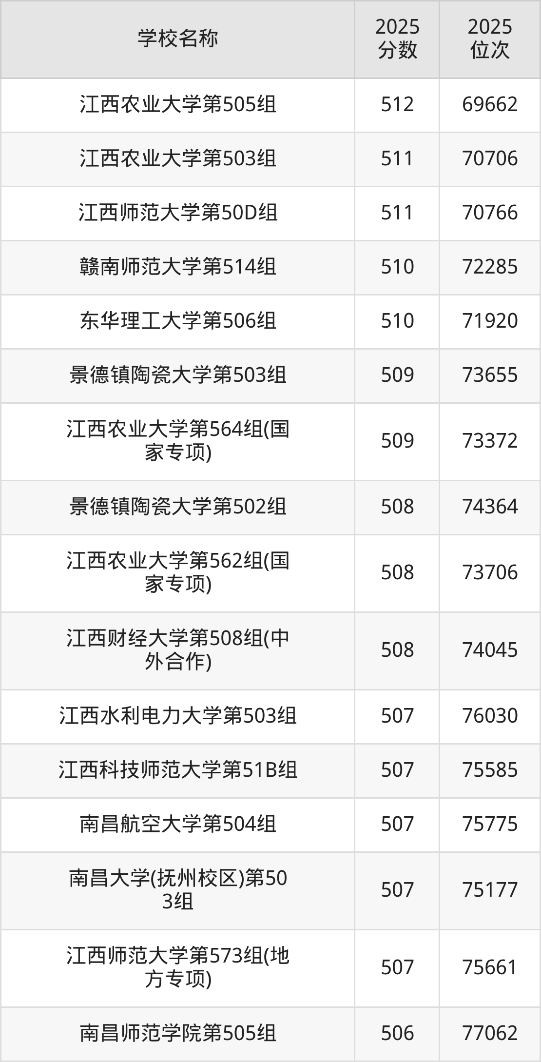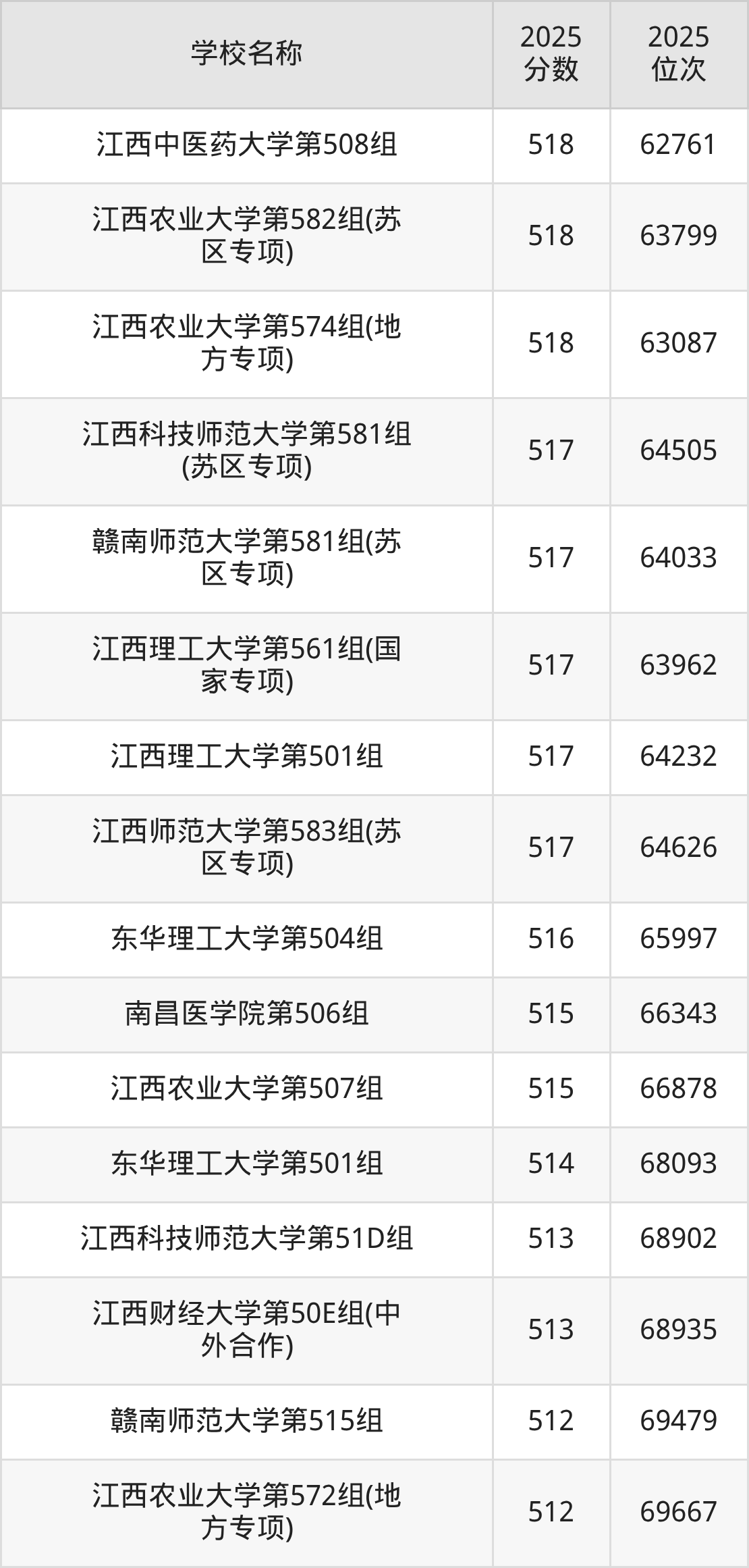 下文为2025年江西省本科大学在江西物理类录取分数线和位次排名表,供大家参考: