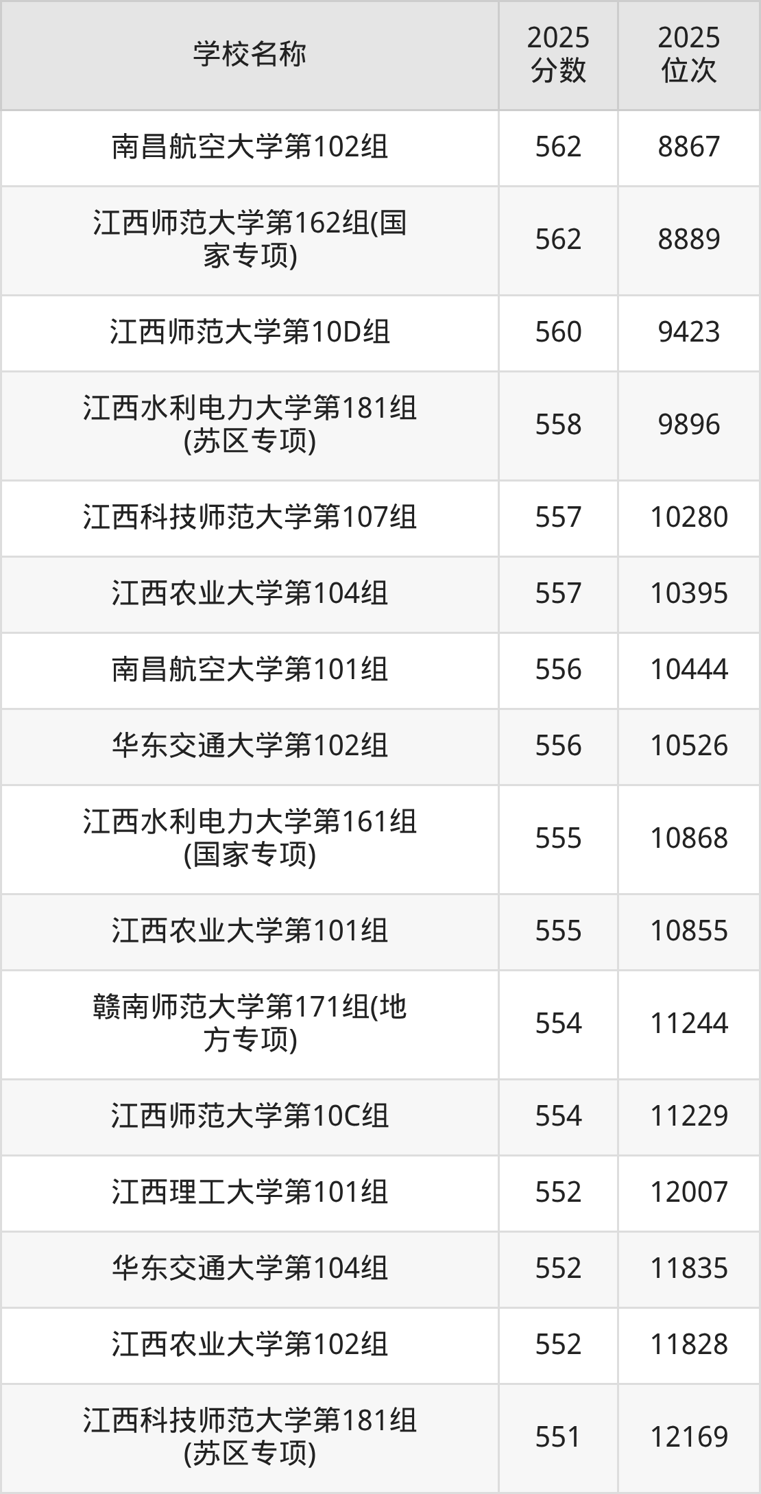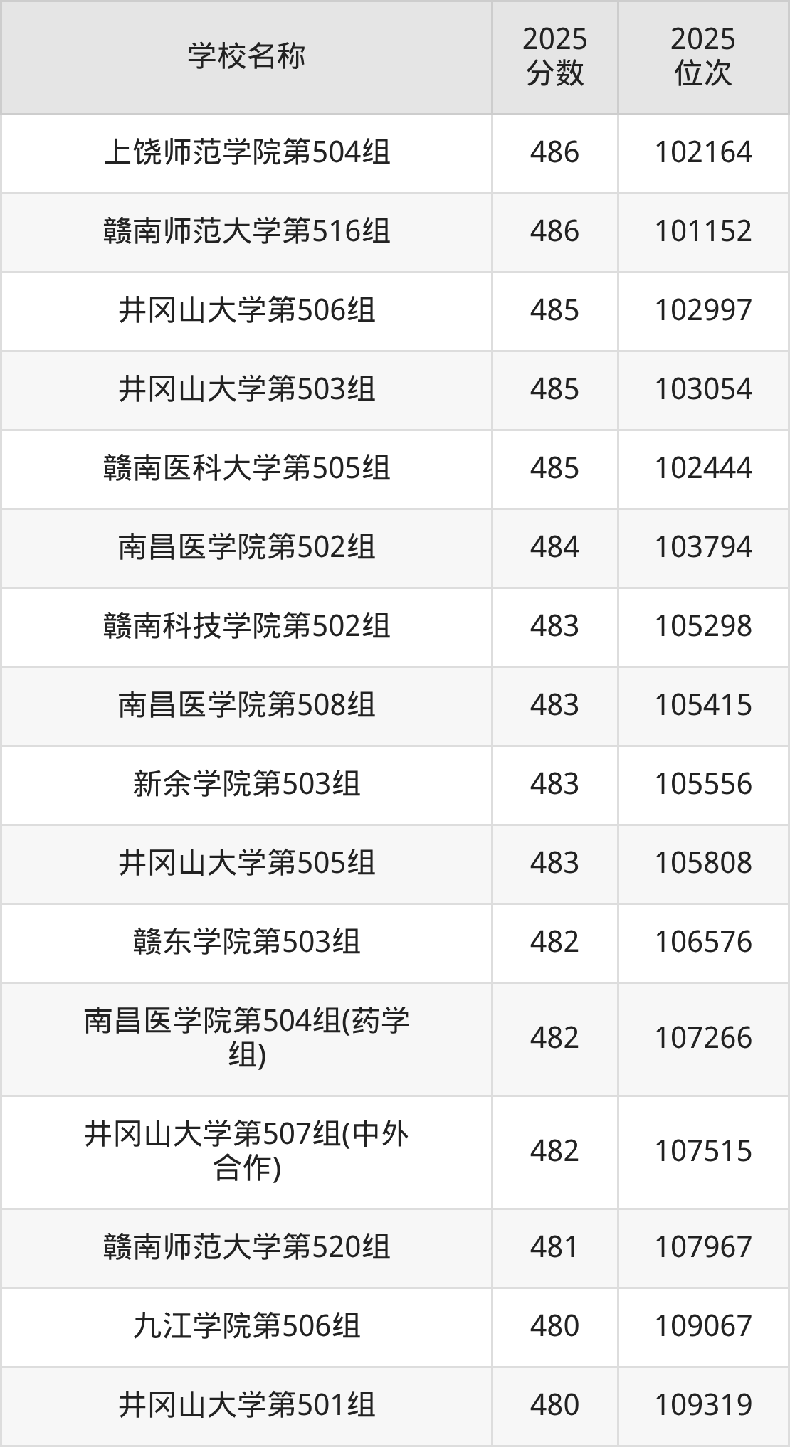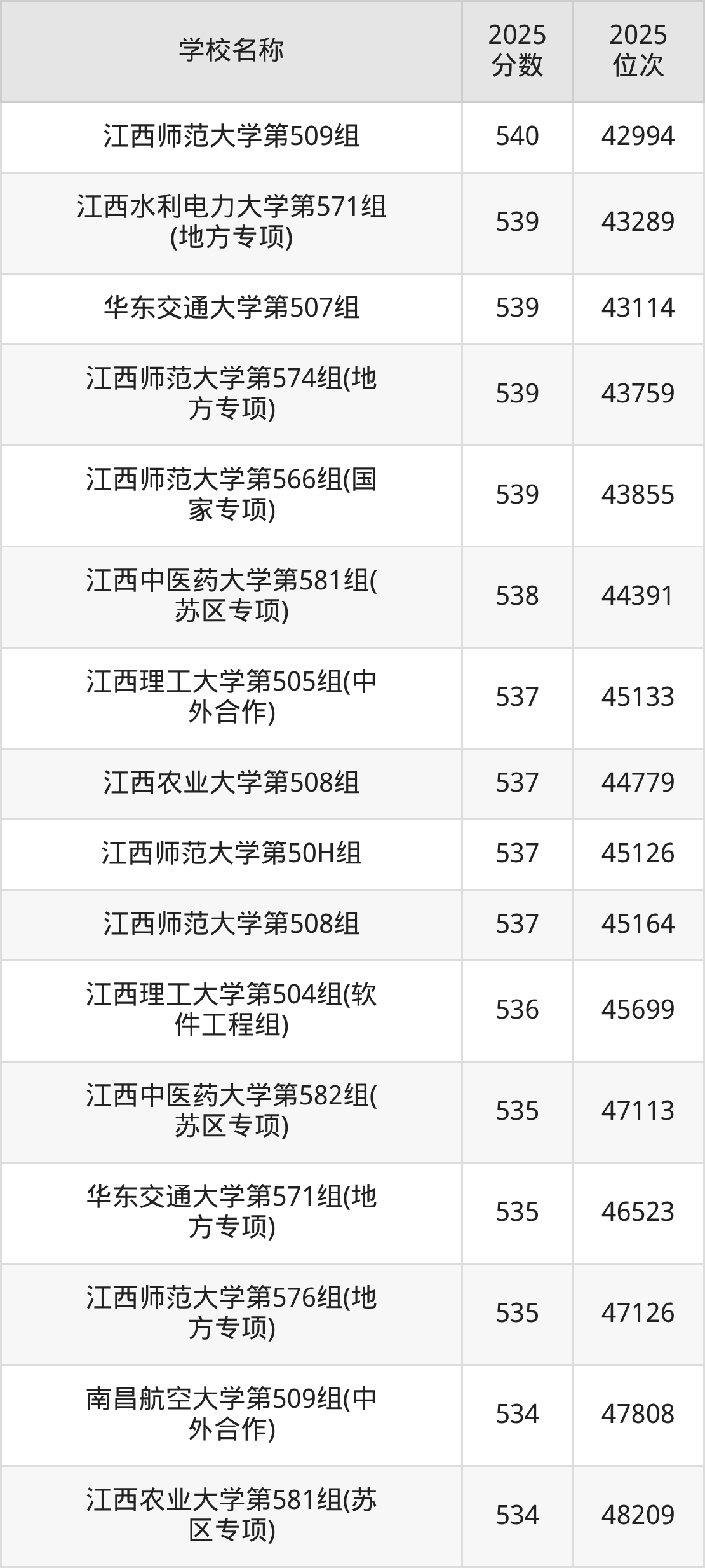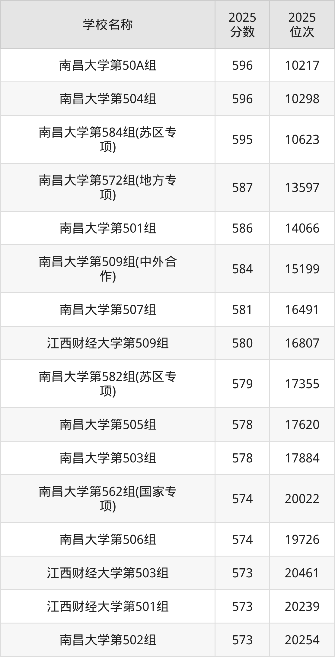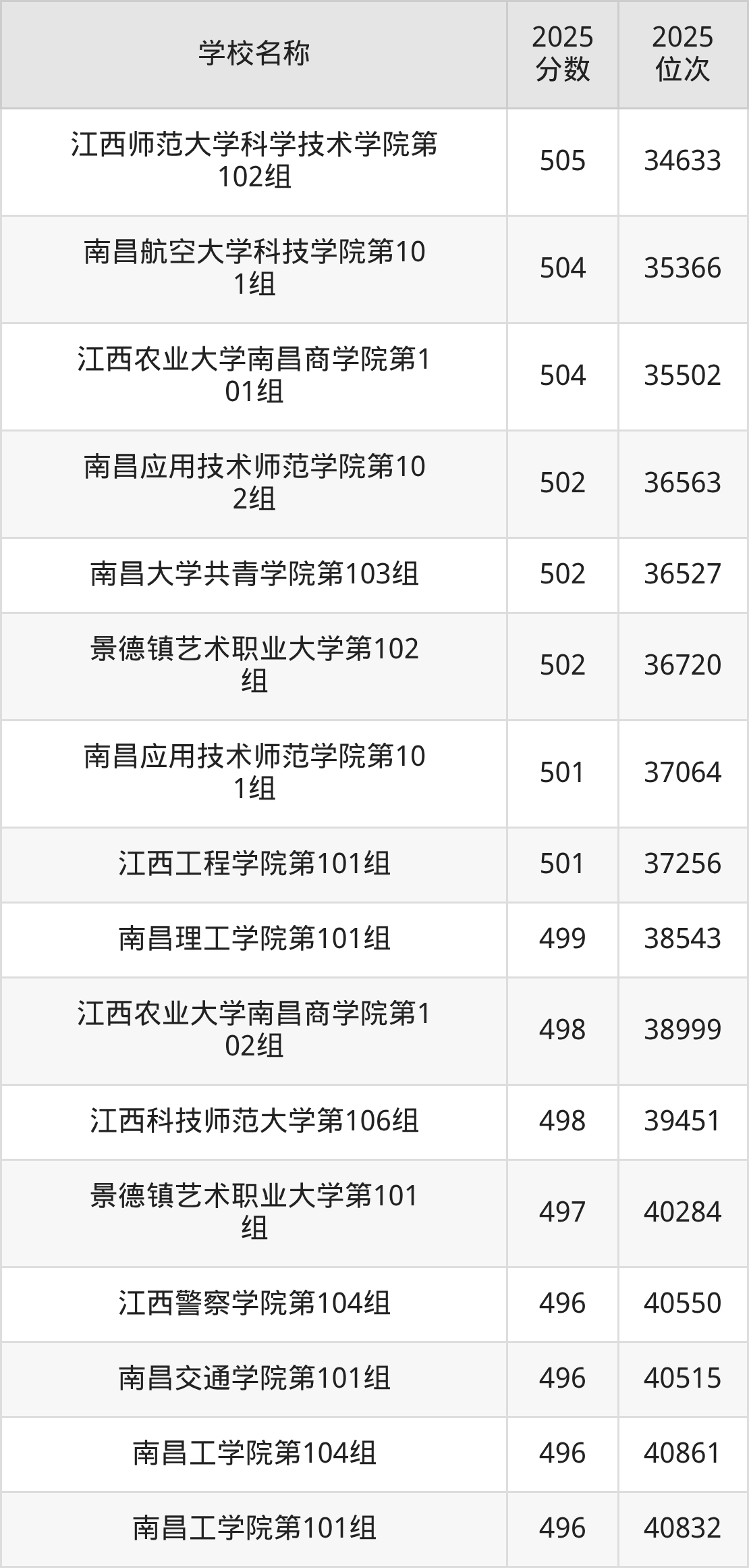 下文为2025年江西省本科大学在江西物理类录取分数线和位次排名表,供大家参考: