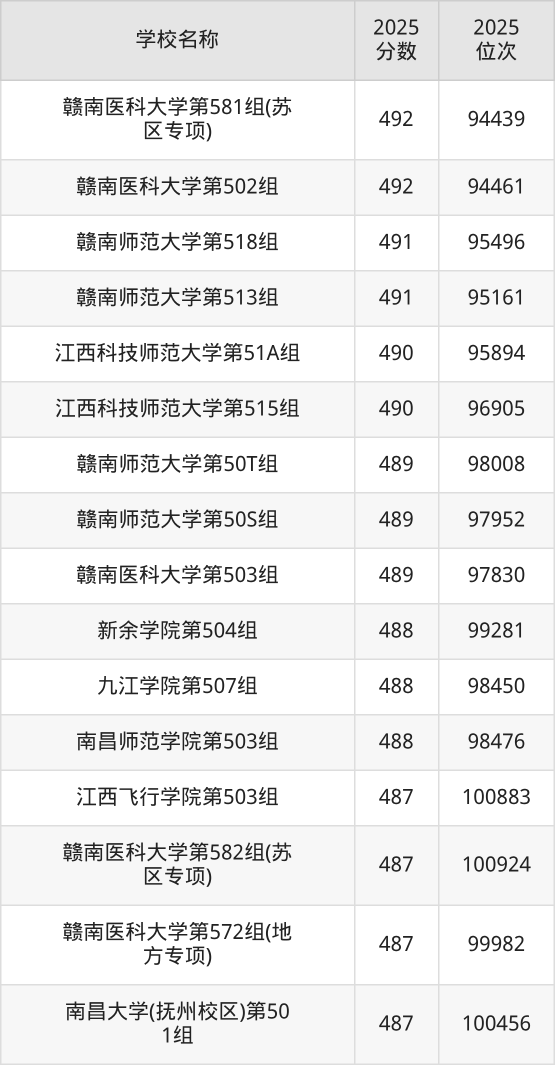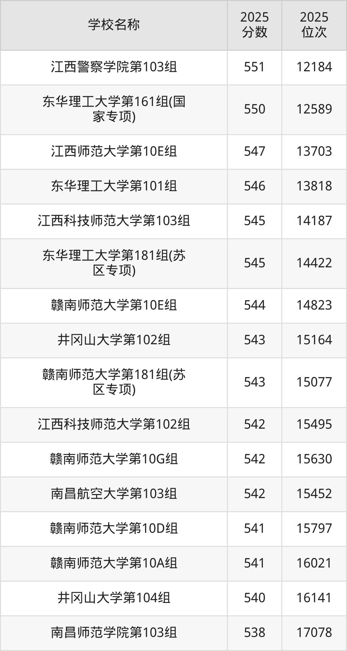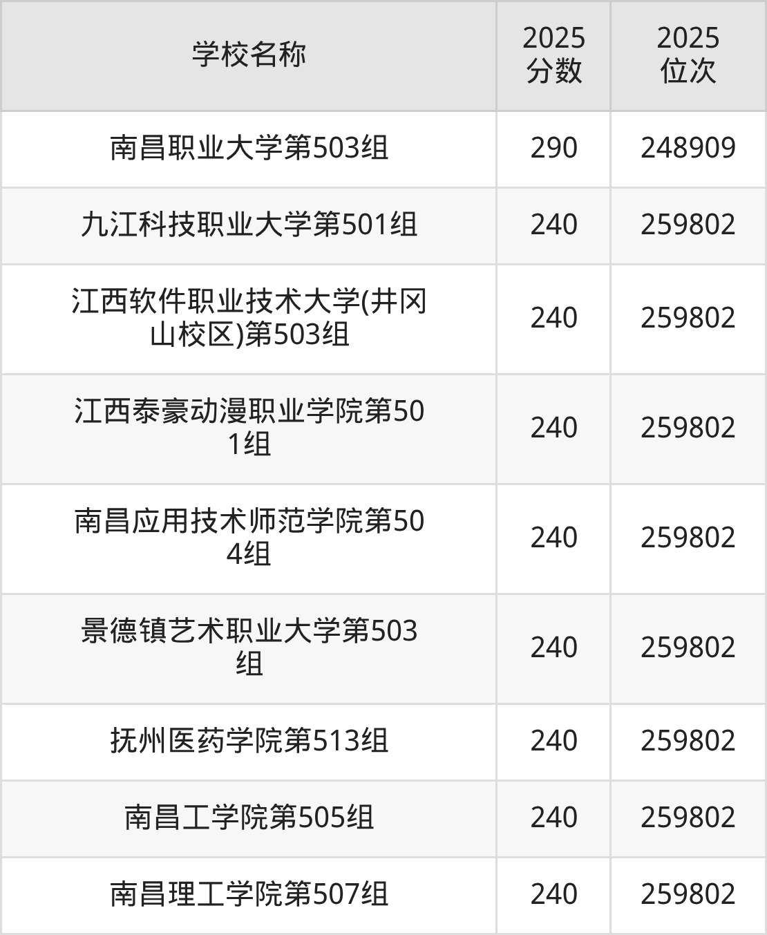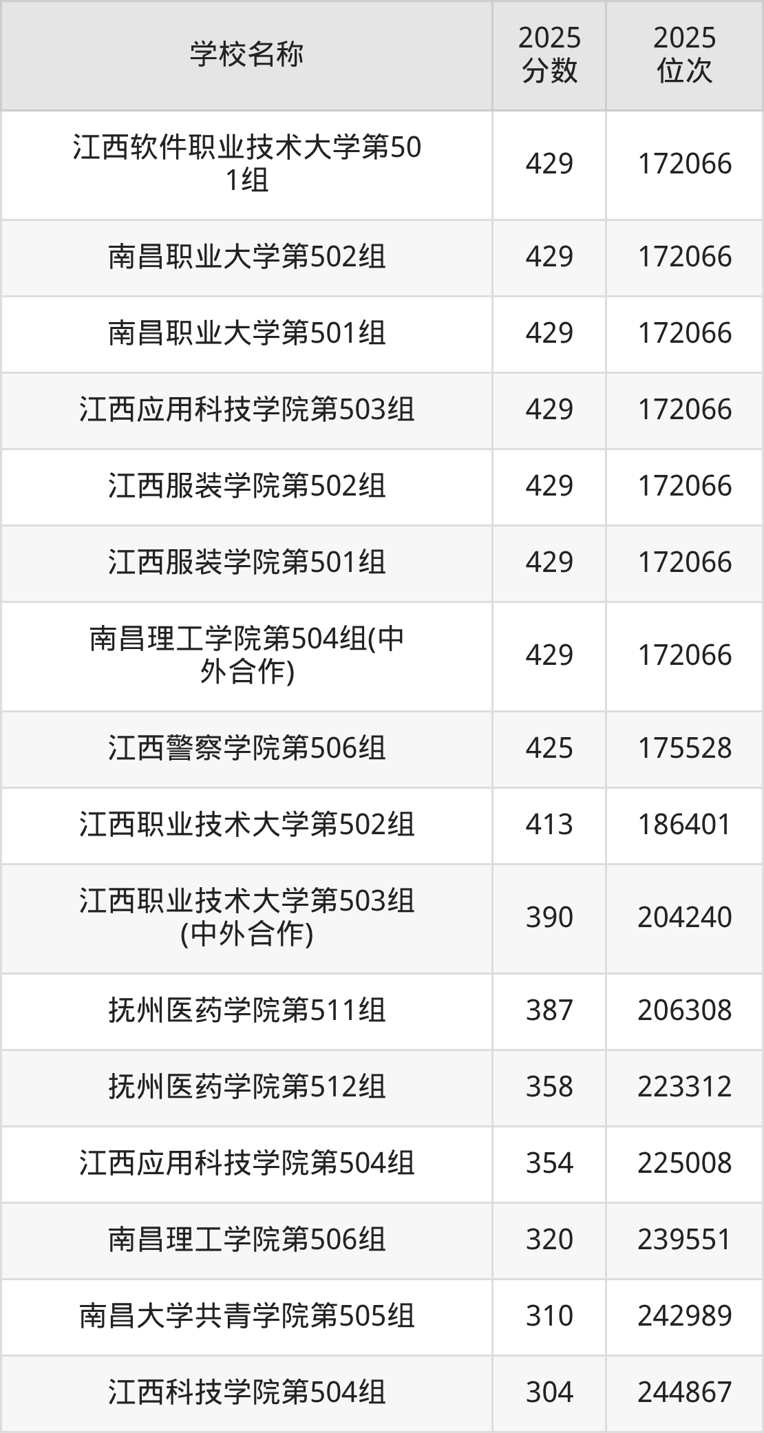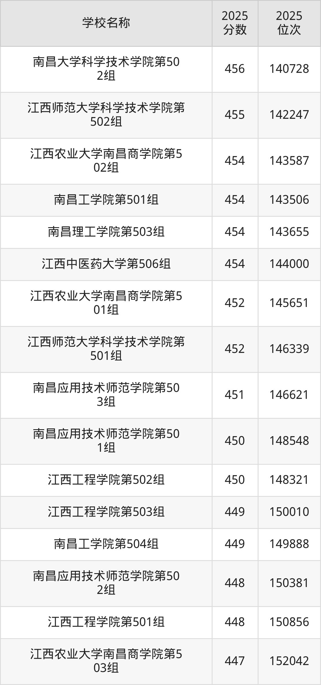下文为2025年江西省本科大学在江西物理类录取分数线和位次排名表,供大家参考: