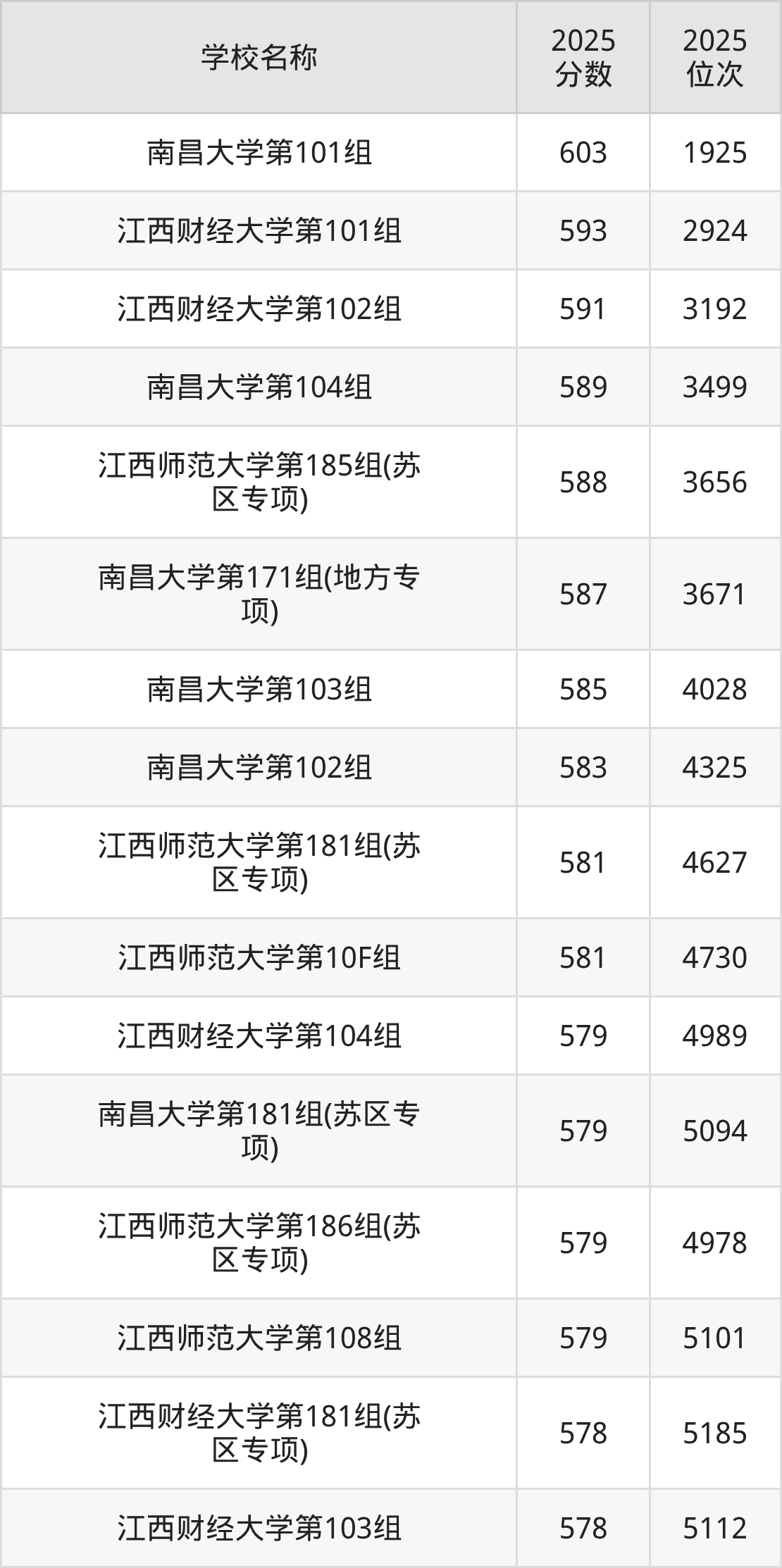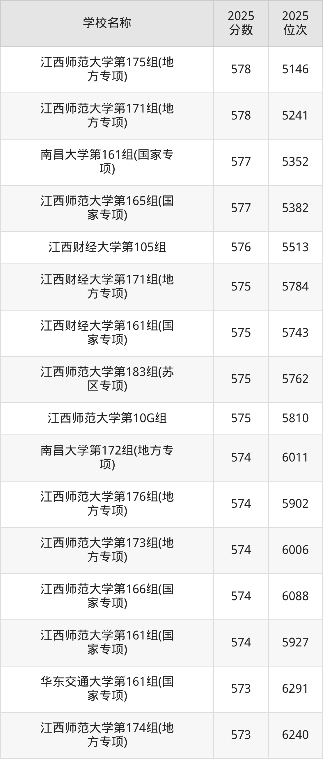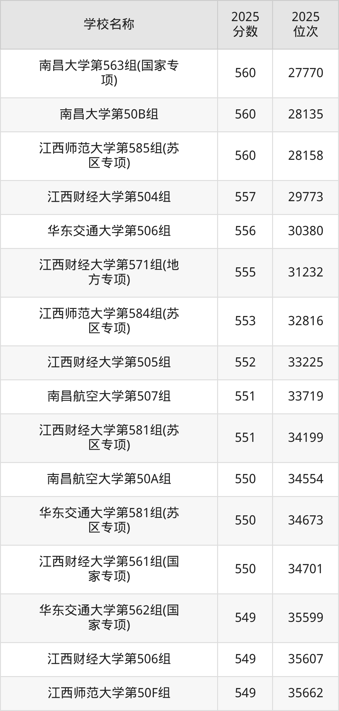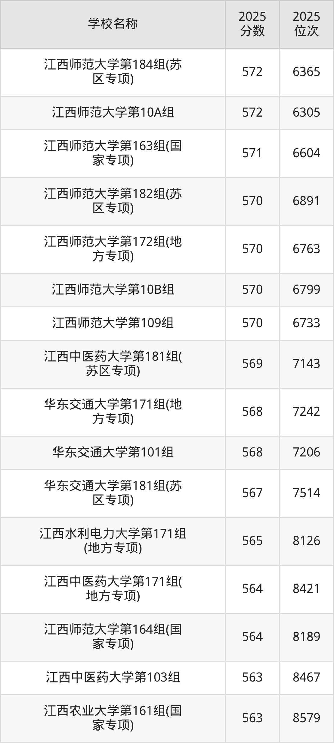 下文为2025年江西省本科大学在江西历史类录取分数线和位次排名表,供大家参考: