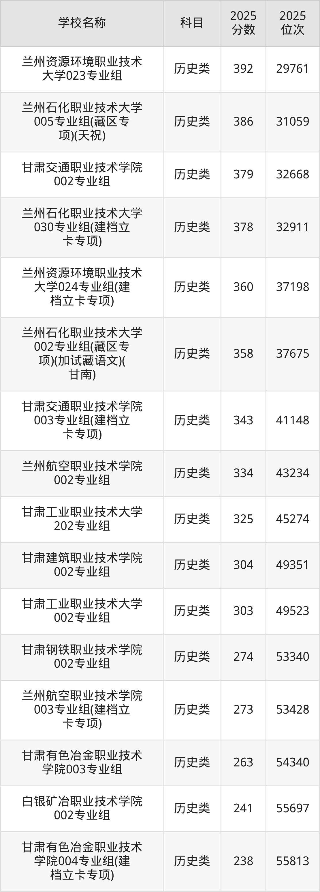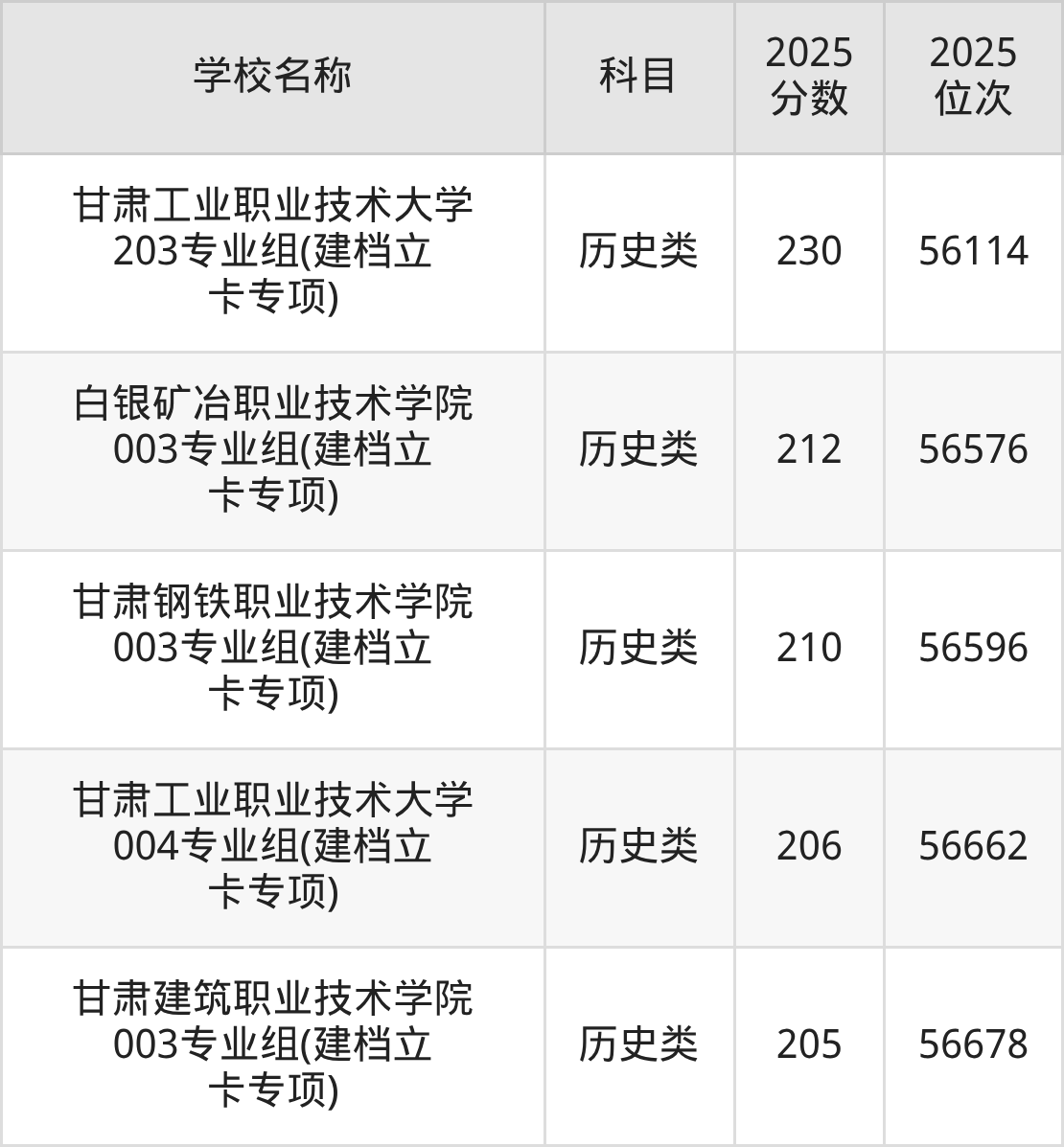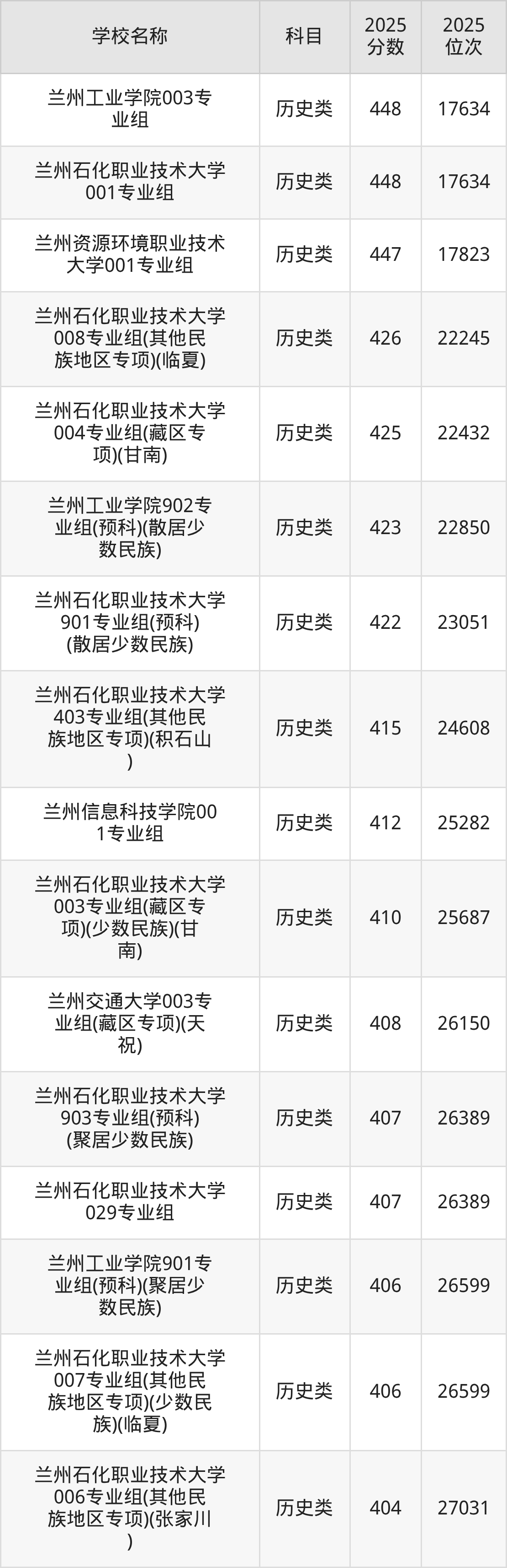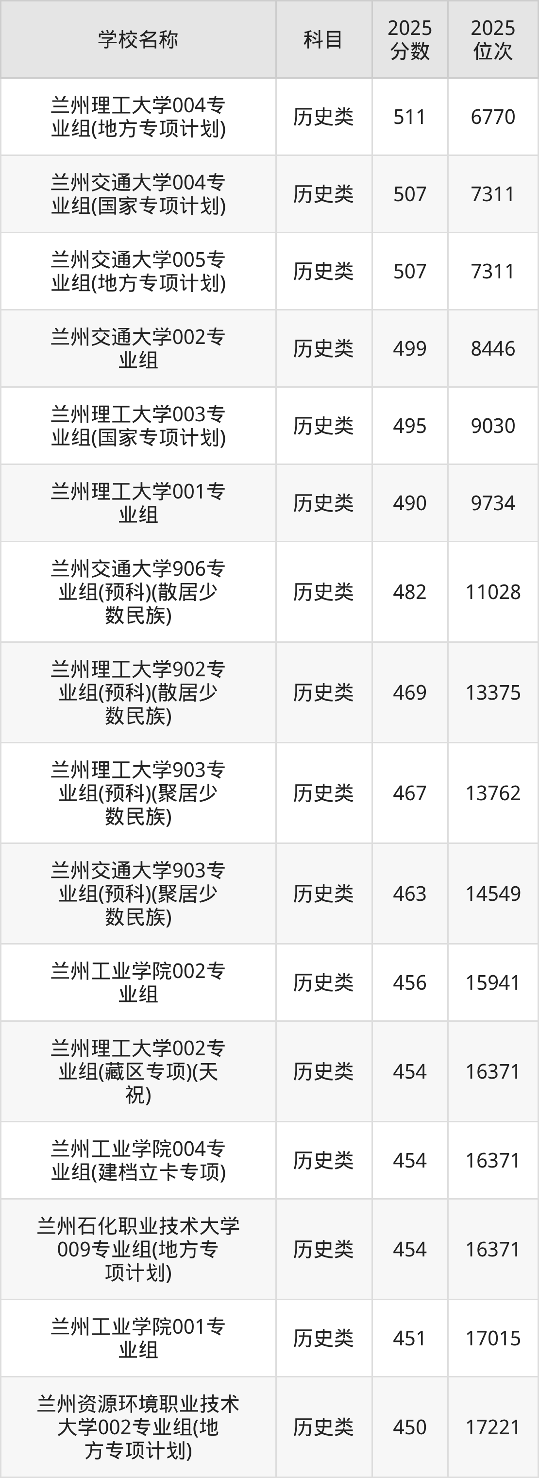 下文为2025年甘肃省理工类大学在甘肃历史类录取分数线和位次排名表,供大家参考: