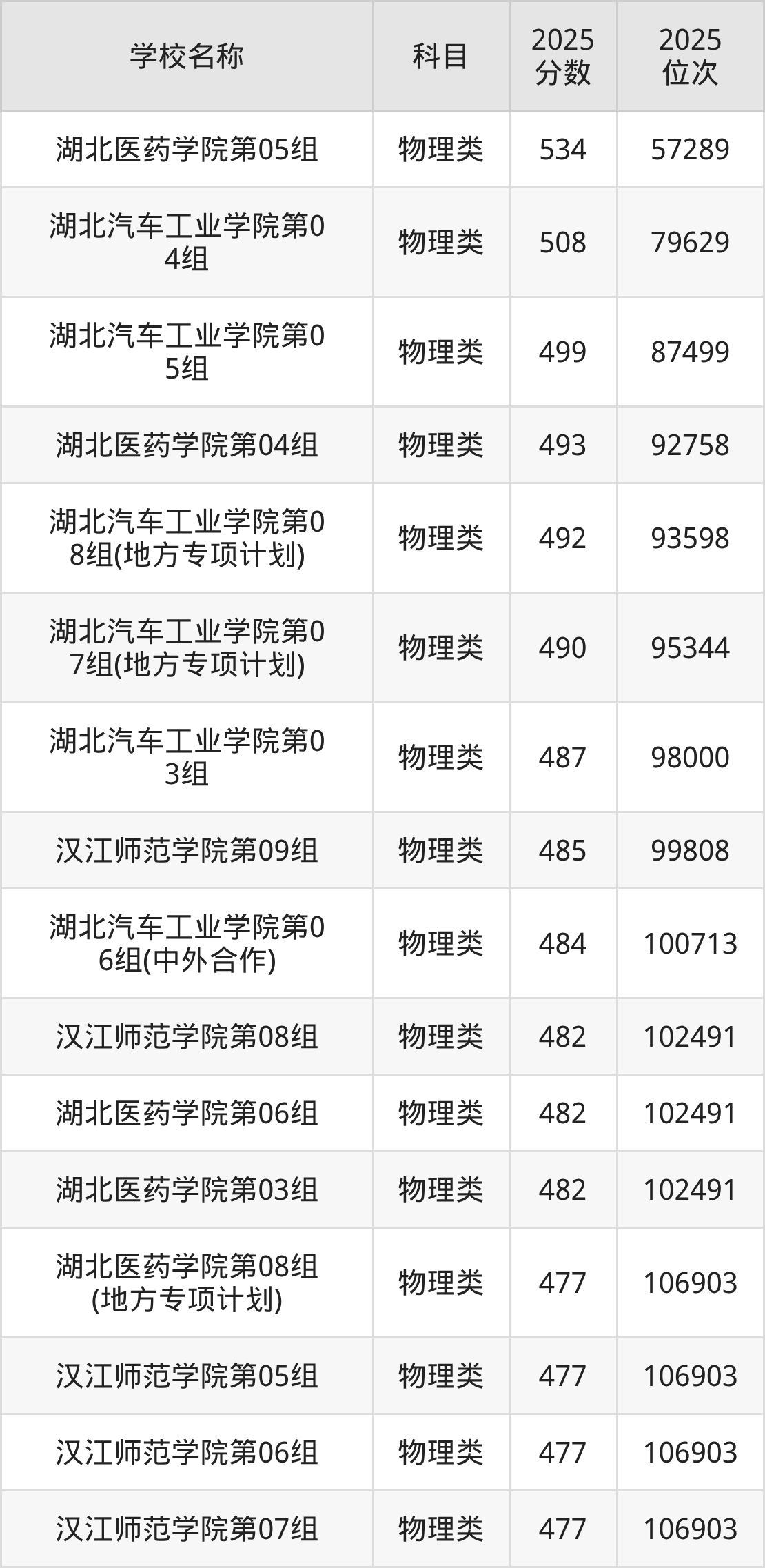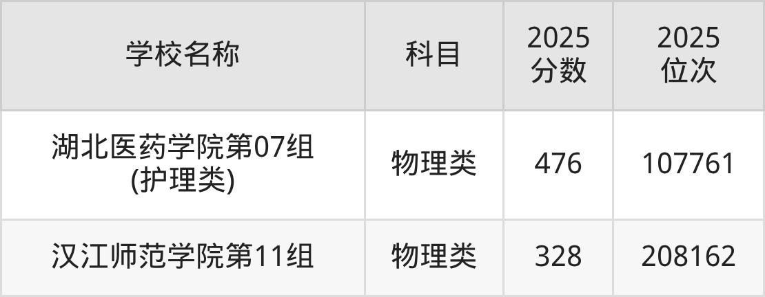 下文为2025年十堰市公办二本大学在湖北物理类录取分数线和位次排名表,供大家参考: