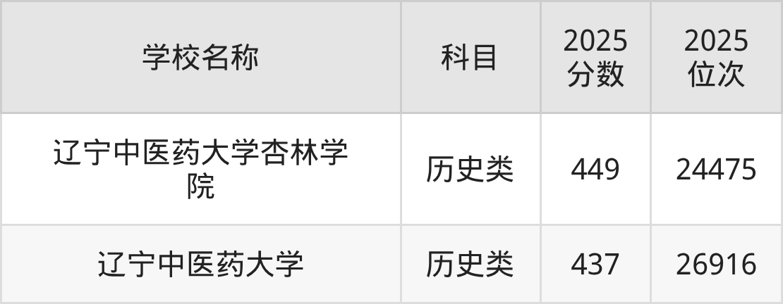下文为2025年辽宁省中医药大学在辽宁历史类录取分数线和位次排名表,供大家参考: