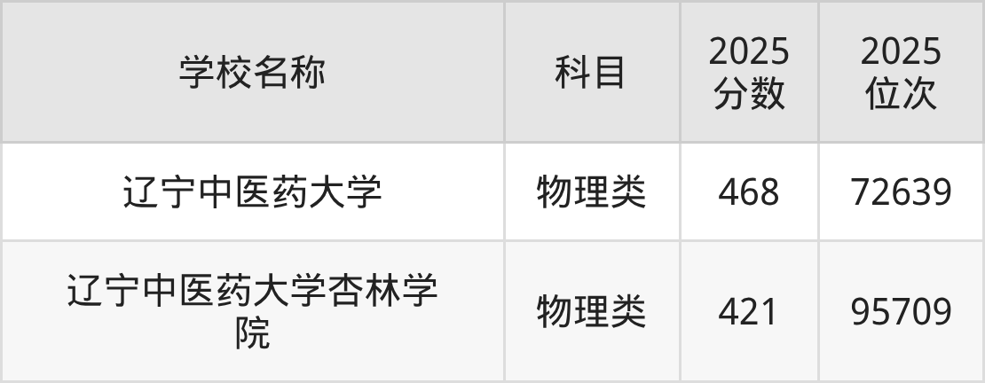 下文为2025年辽宁省中医药大学在辽宁物理类录取分数线和位次排名表,供大家参考: