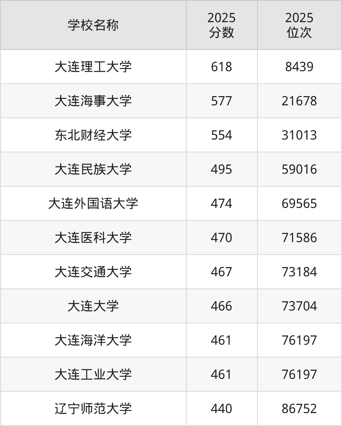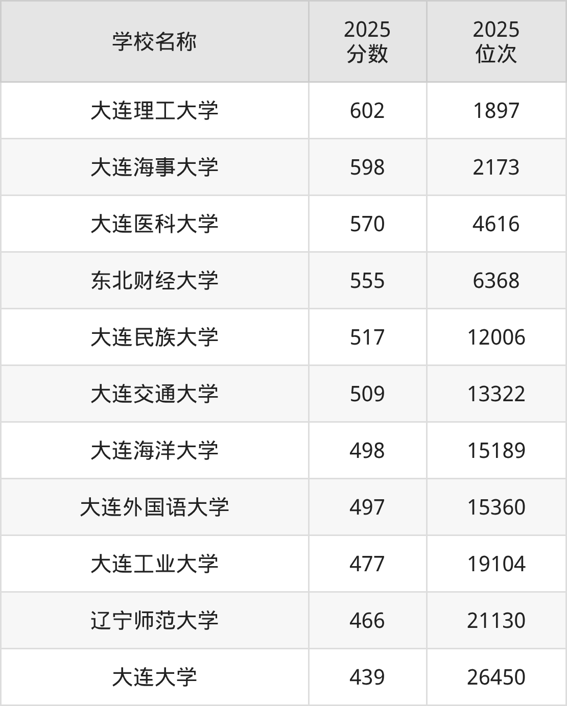 下文为2025年大连市一本大学在辽宁物理类录取分数线和位次排名表,供大家参考: