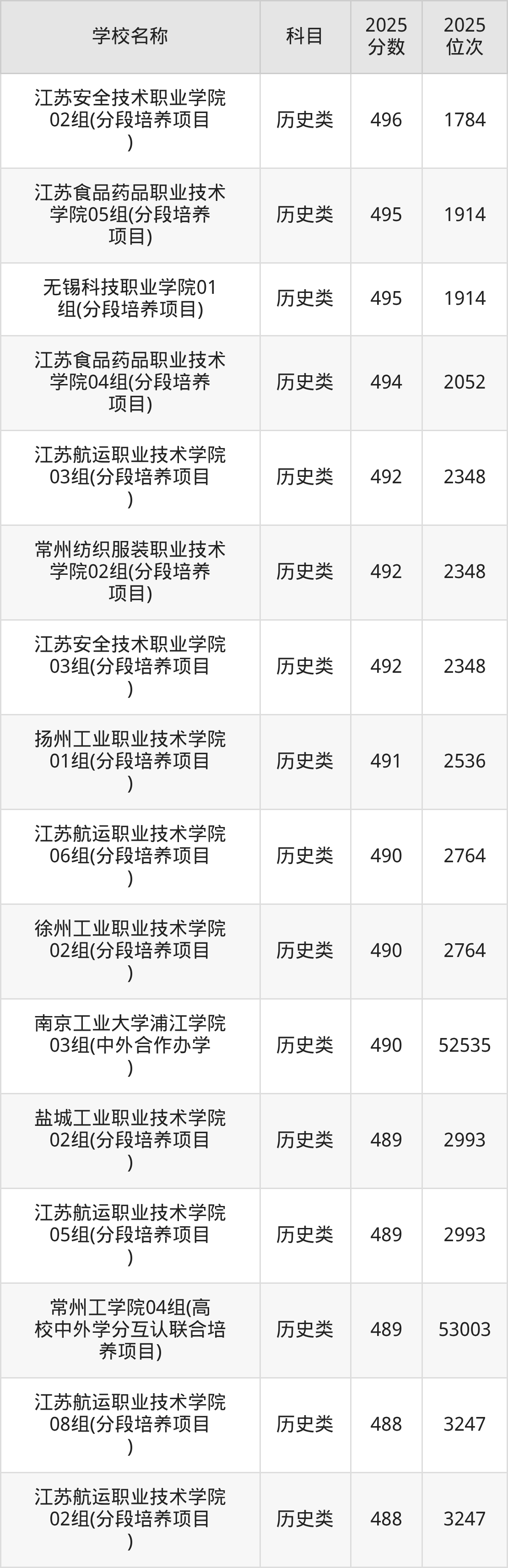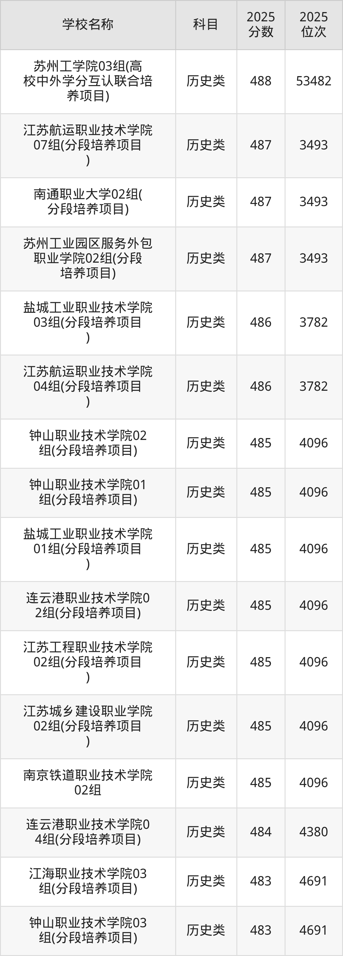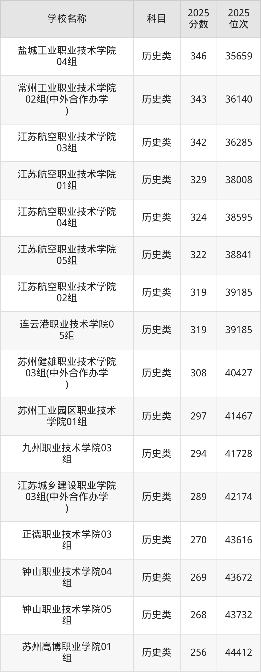 下文为2025年江苏省理工类大学在江苏历史类录取分数线和位次排名表,供大家参考: