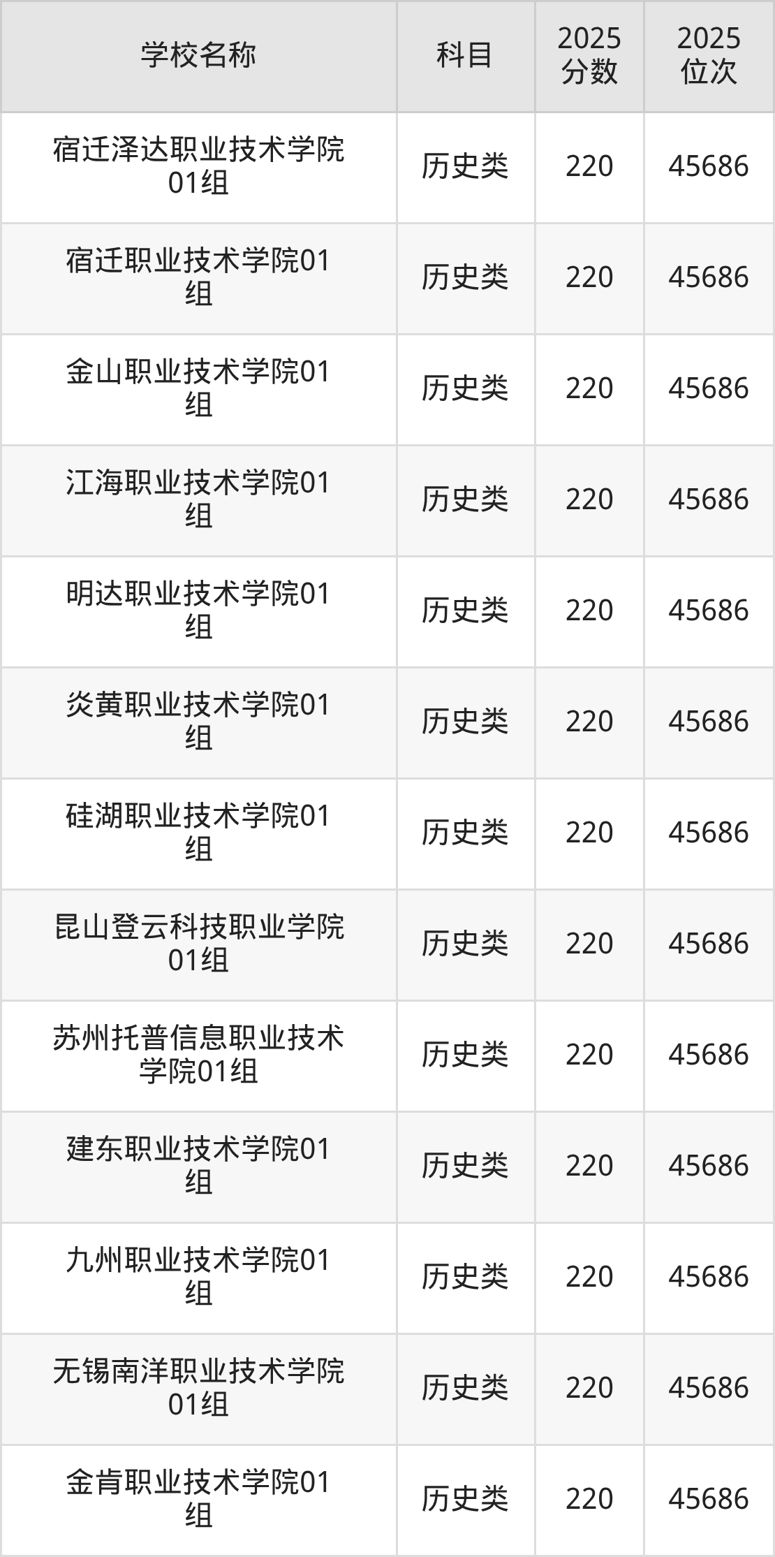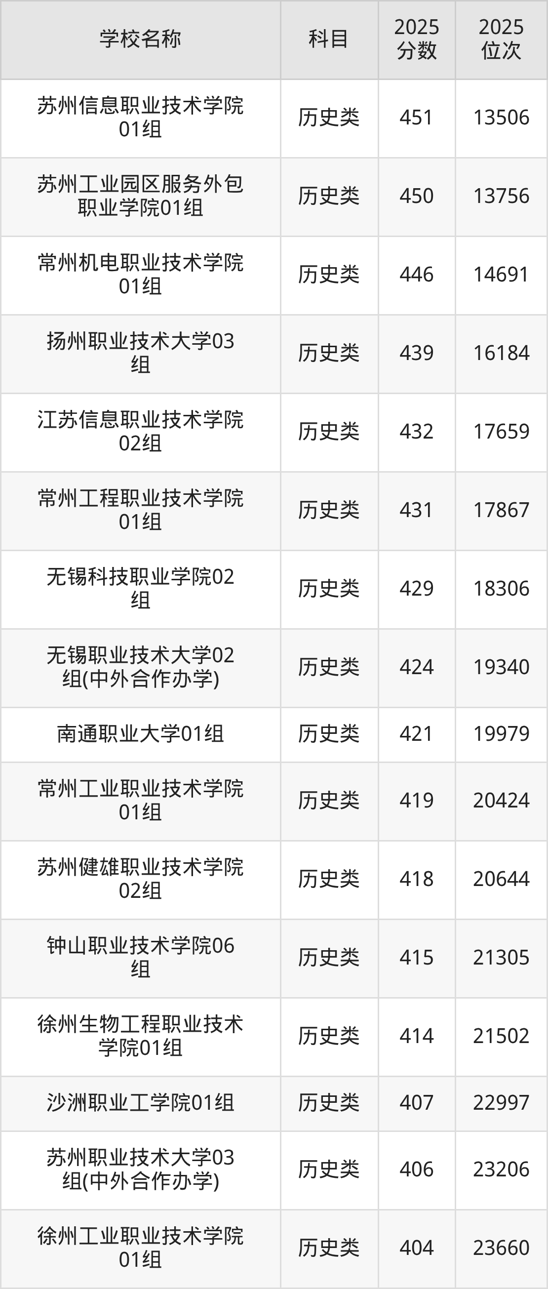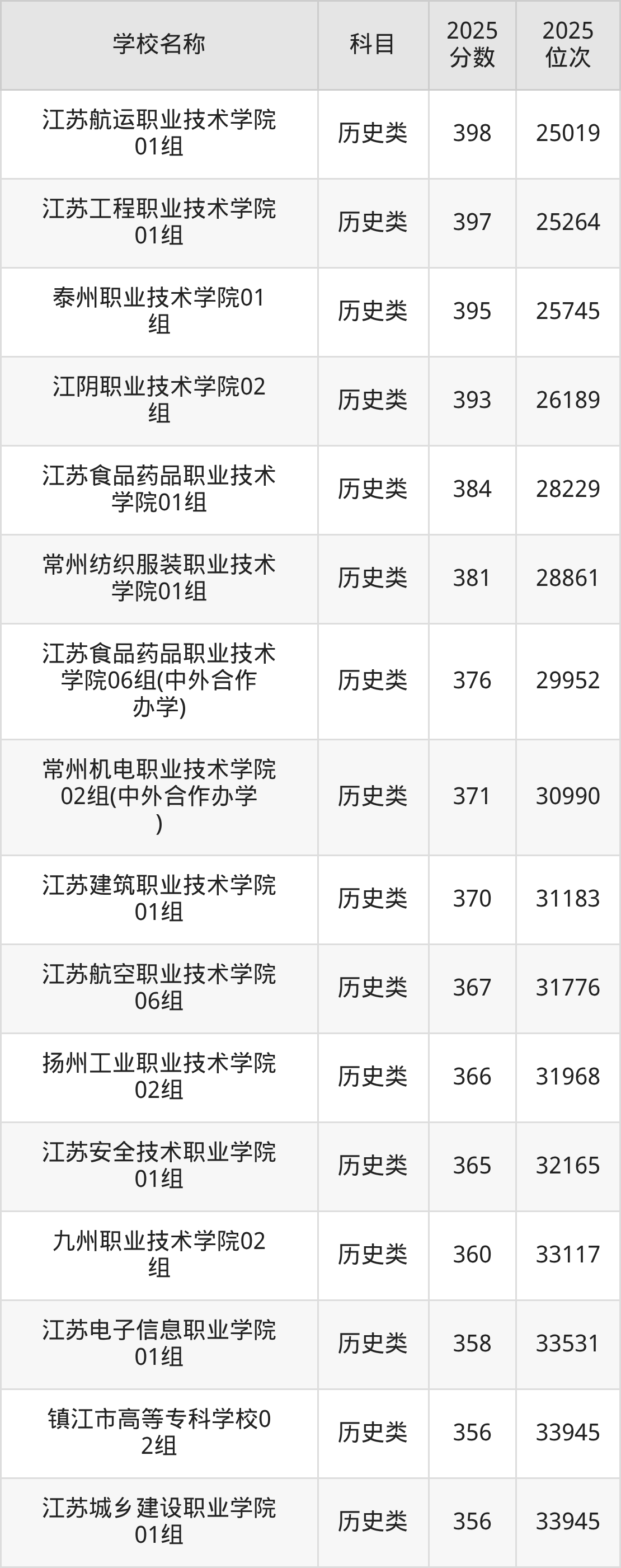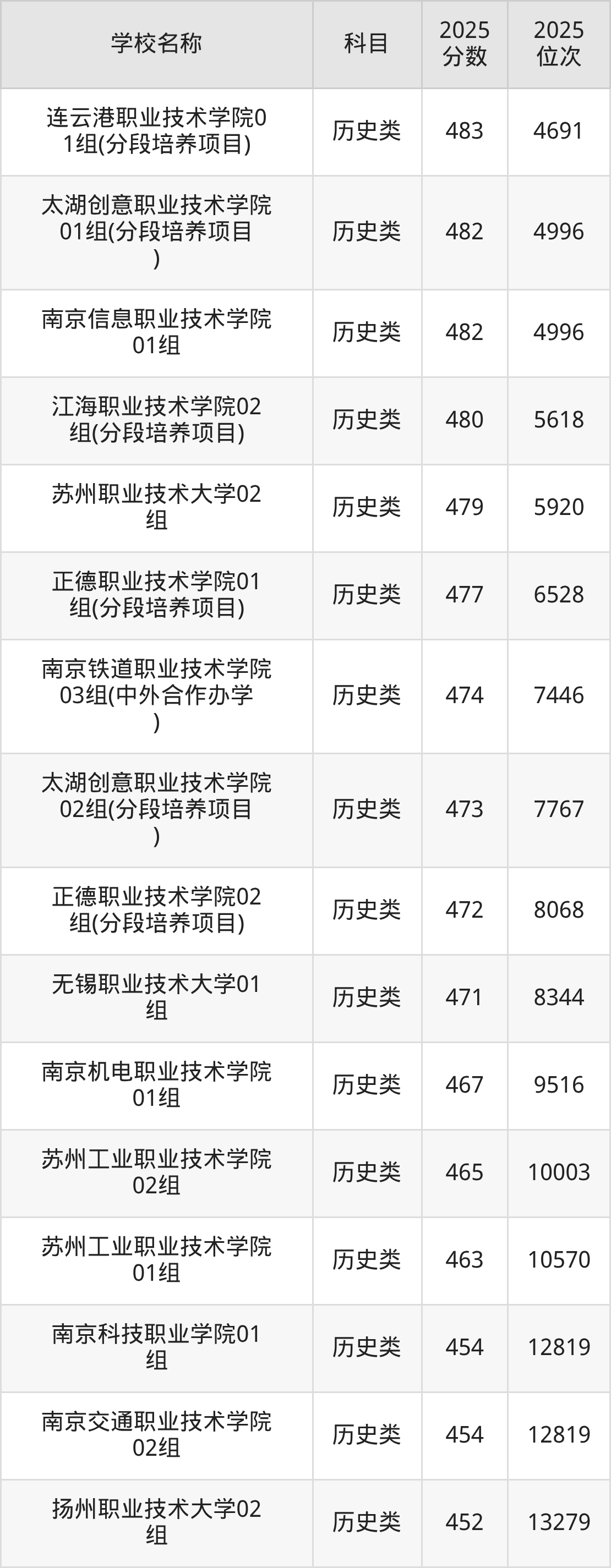 下文为2025年江苏省理工类大学在江苏历史类录取分数线和位次排名表,供大家参考: