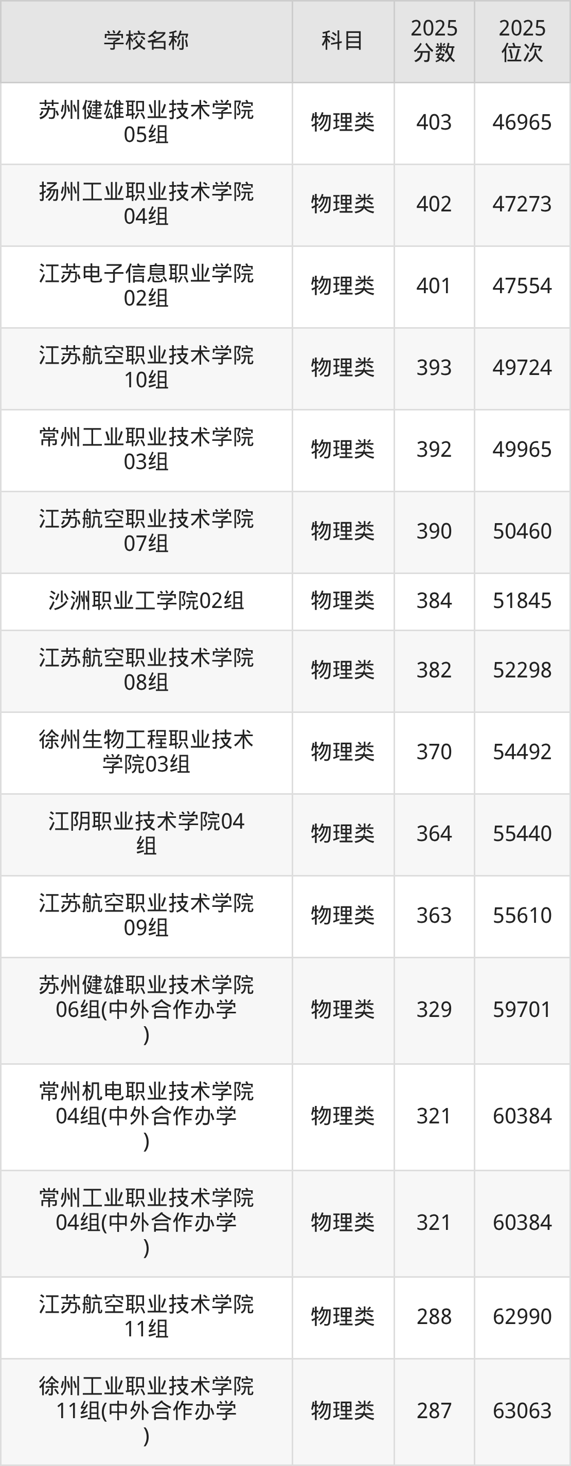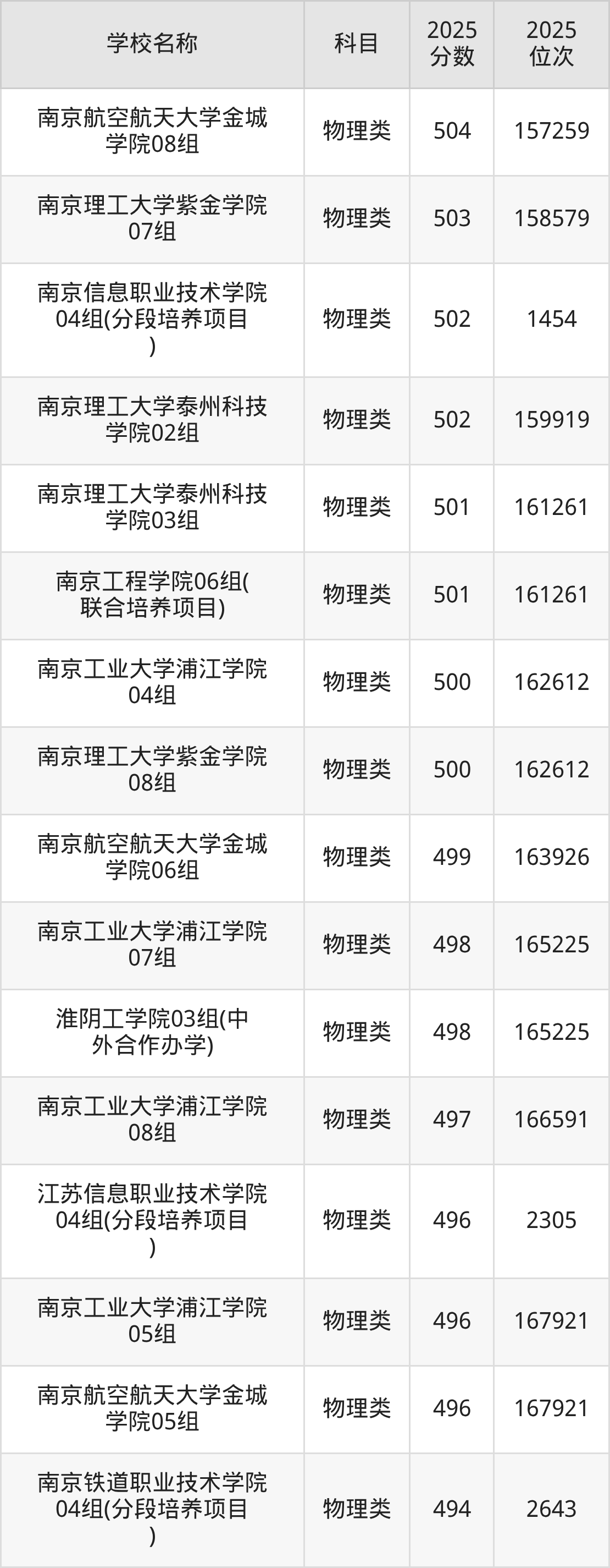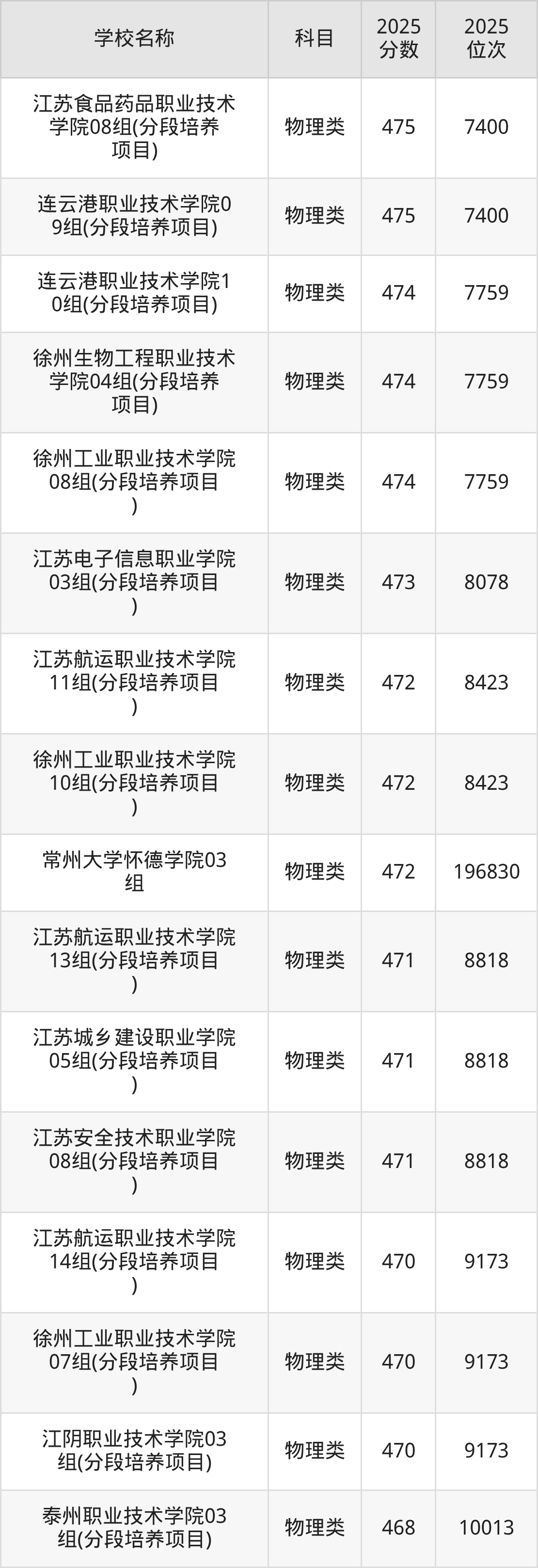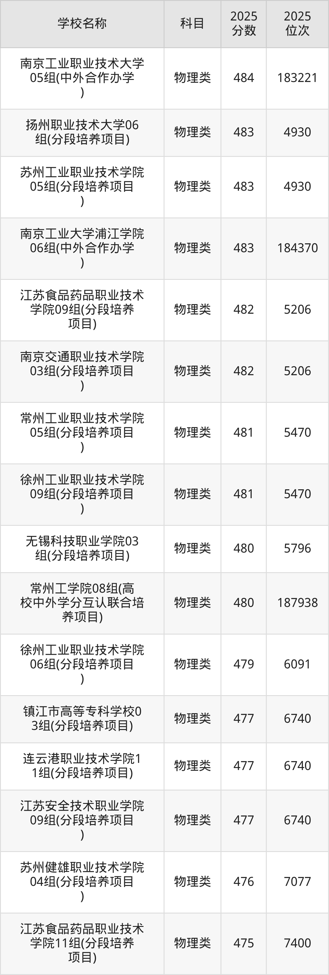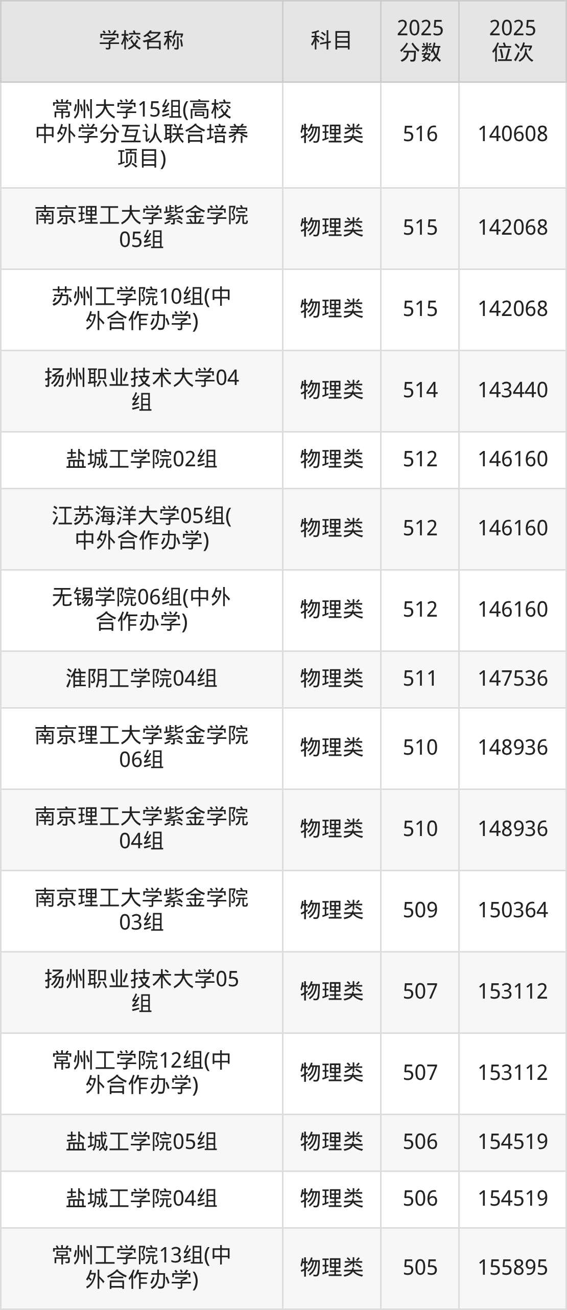 下文为2025年江苏省理工类大学在江苏物理类录取分数线和位次排名表,供大家参考: