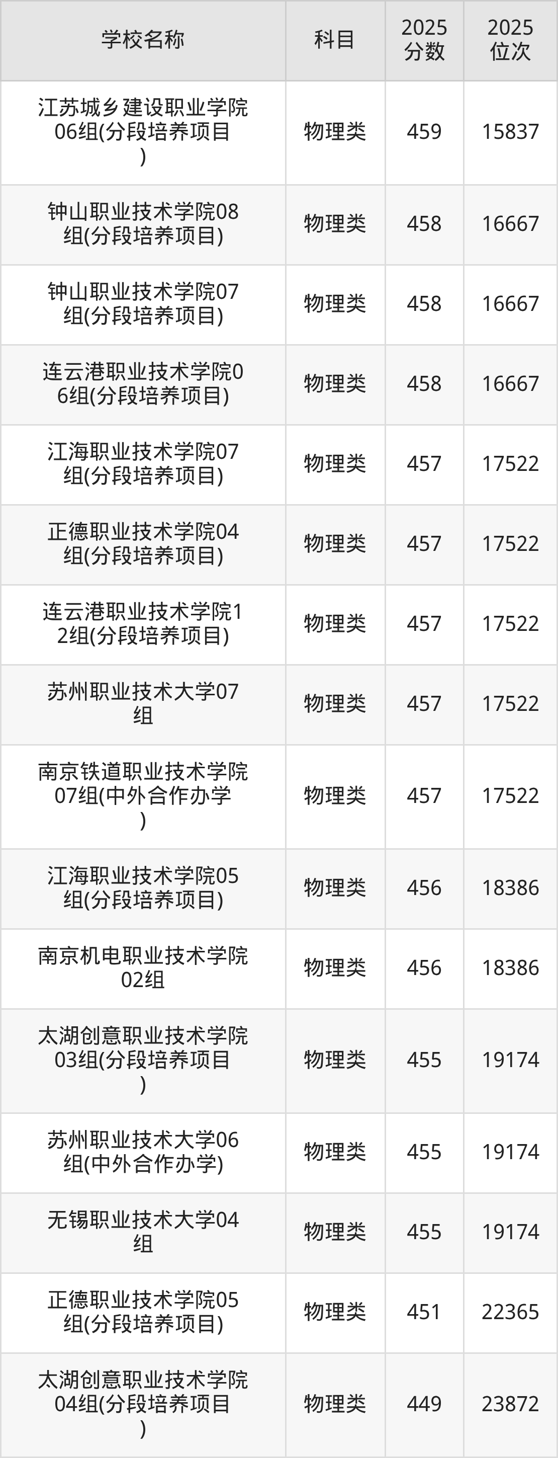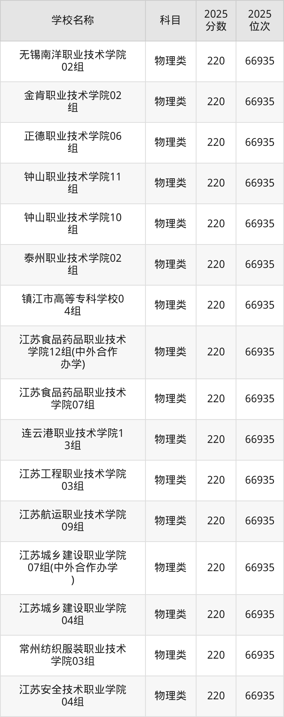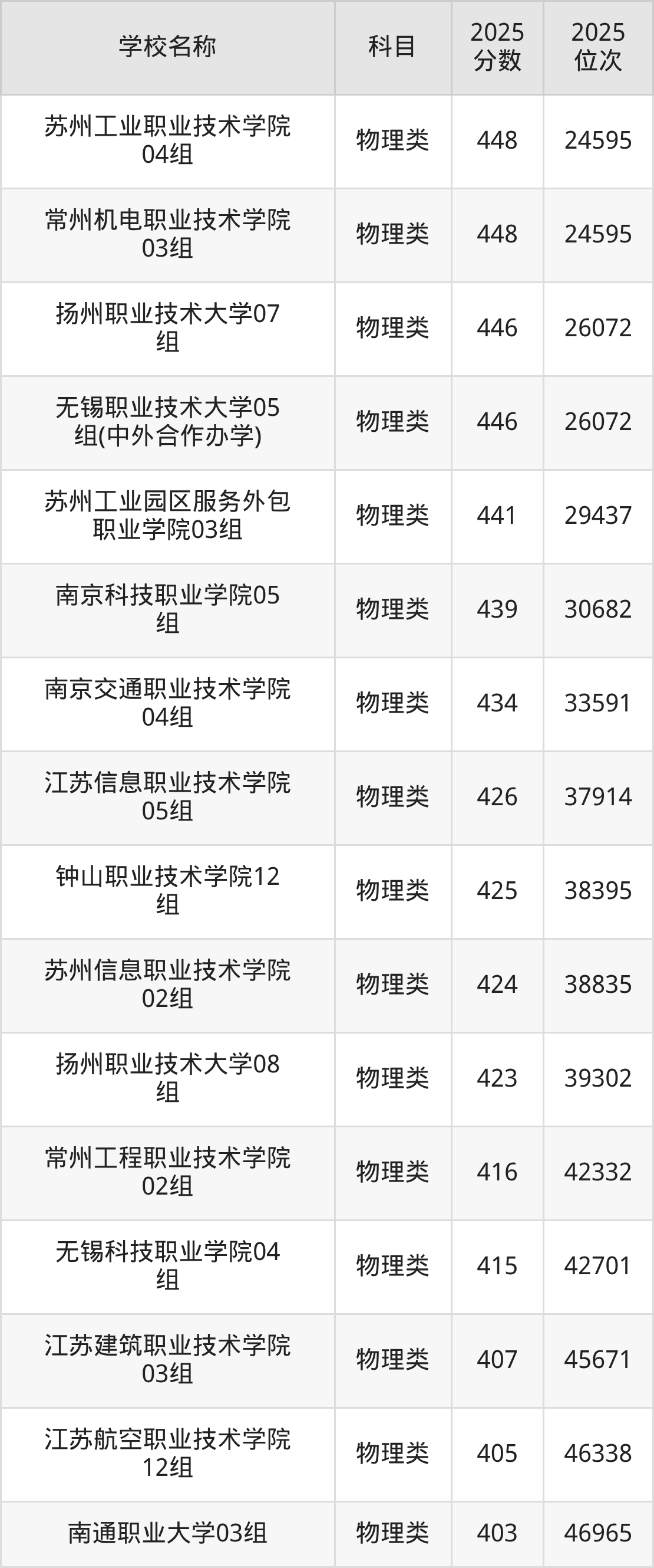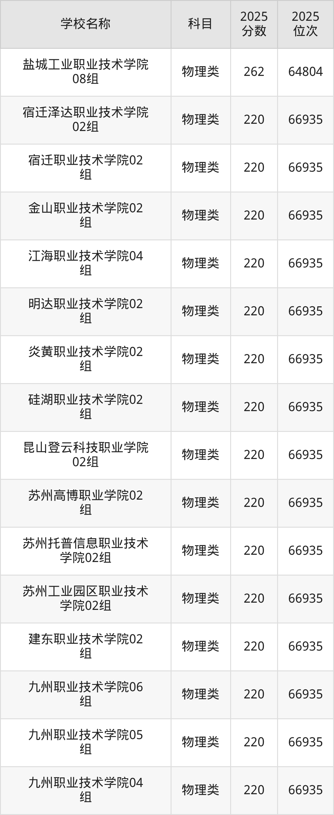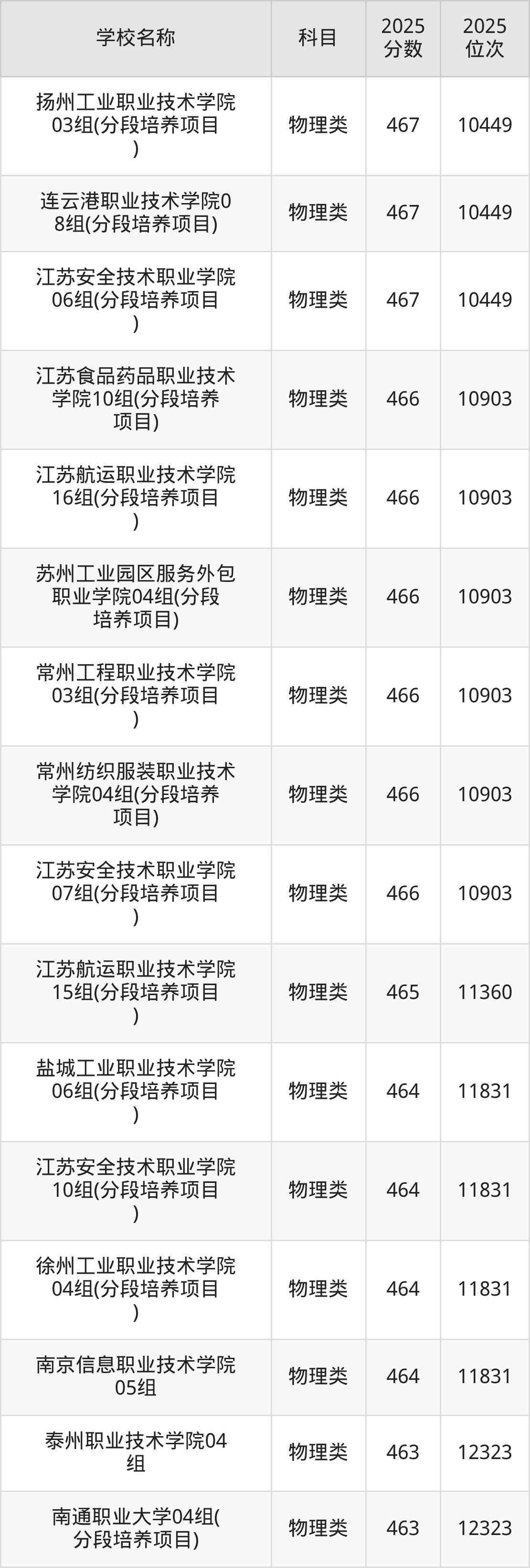 下文为2025年江苏省理工类大学在江苏物理类录取分数线和位次排名表,供大家参考: