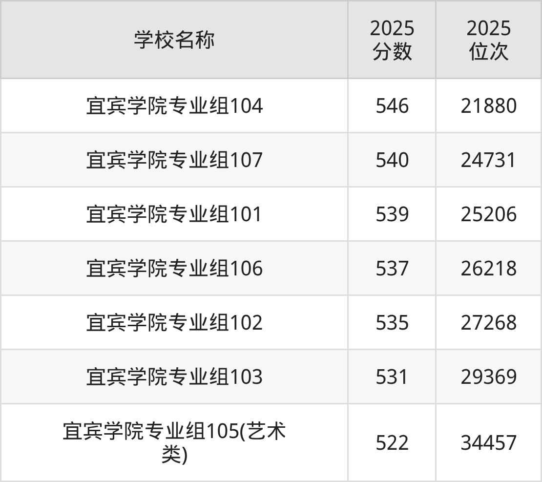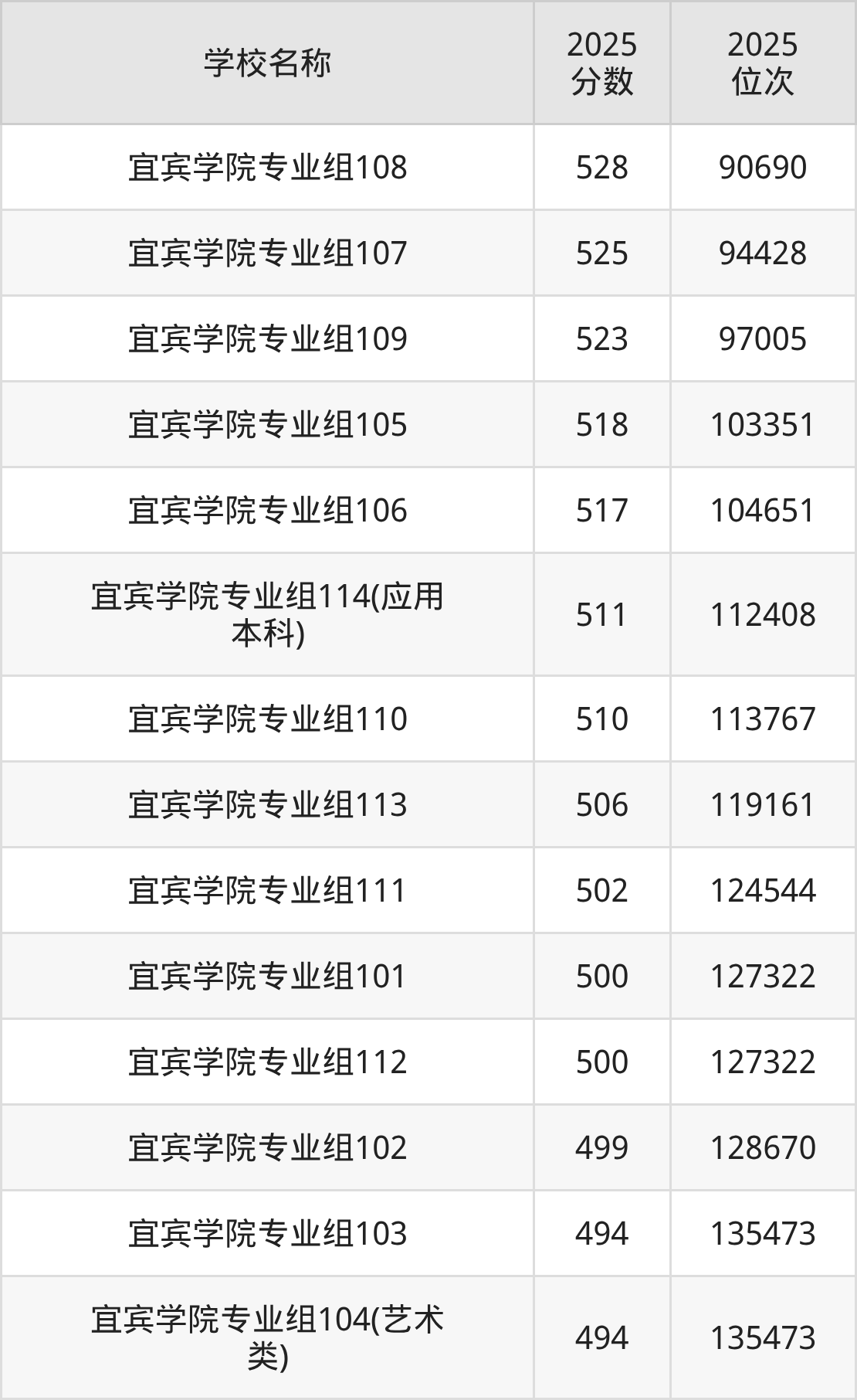 下文为2025年宜宾市本科大学在四川物理类录取分数线和位次排名表,供大家参考: