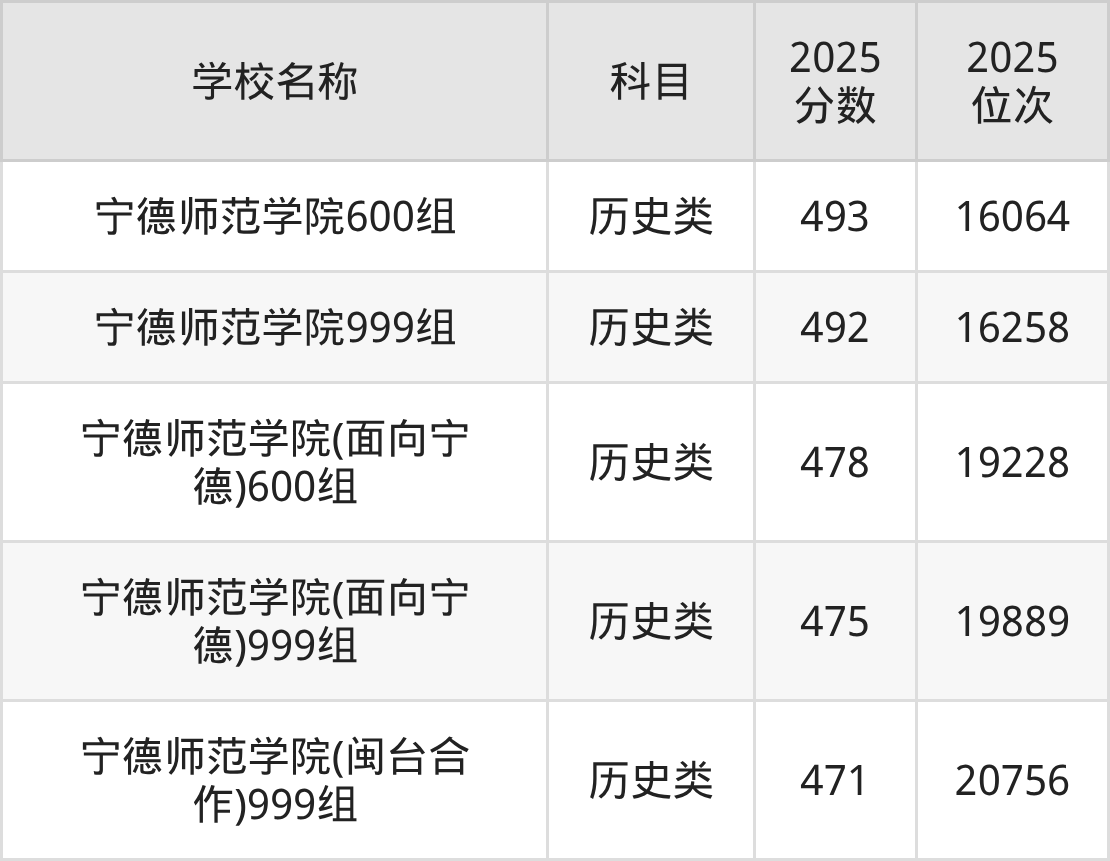 下文为2025年宁德市二本师范大学在福建历史类录取分数线和位次排名表,供大家参考:
