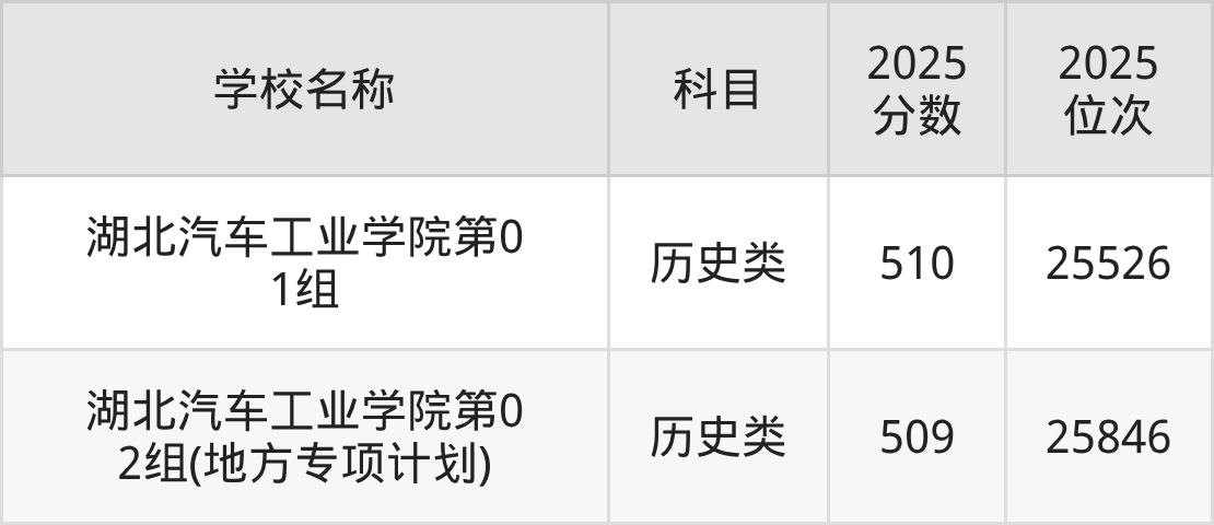 下文为2025年十堰市理工类大学在湖北历史类录取分数线和位次排名表,供大家参考: