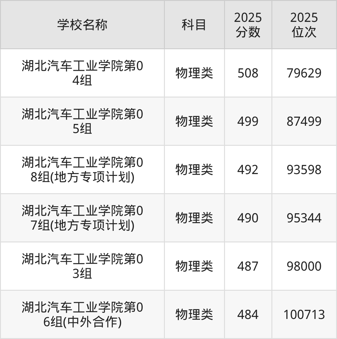 下文为2025年十堰市理工类大学在湖北物理类录取分数线和位次排名表,供大家参考: