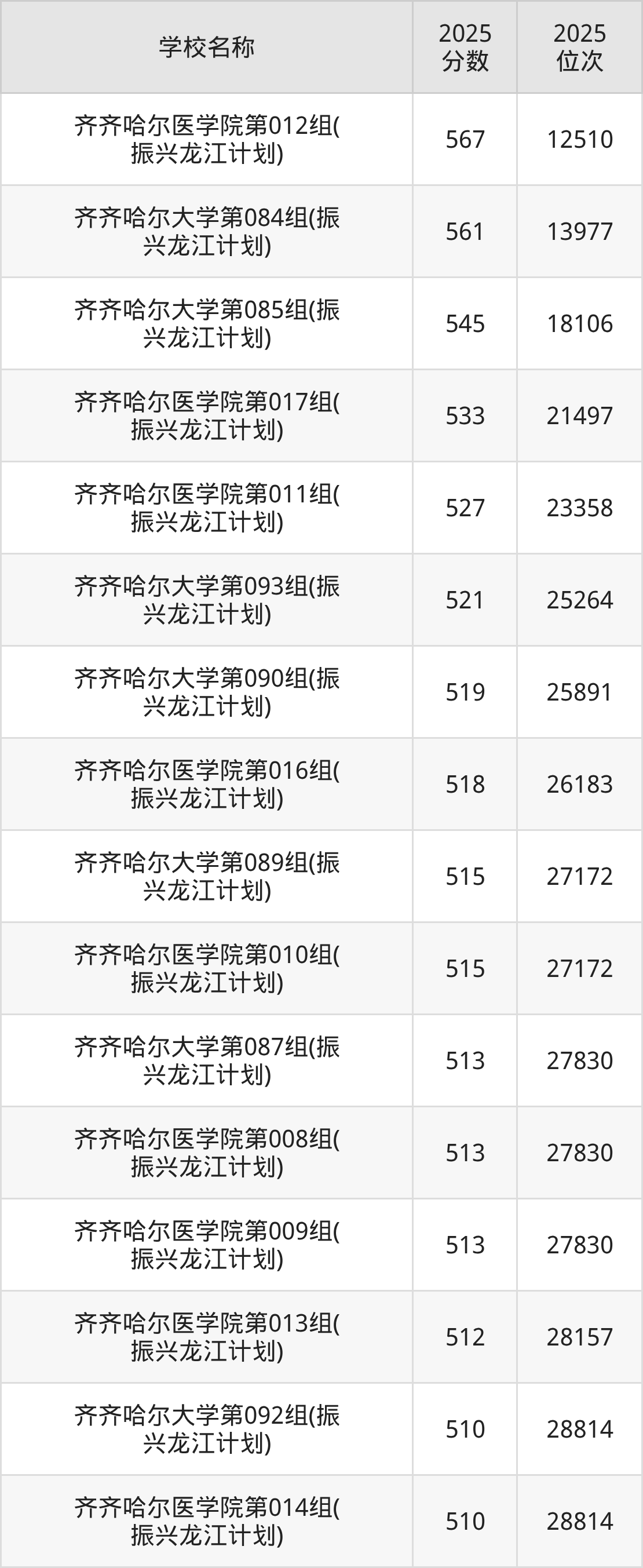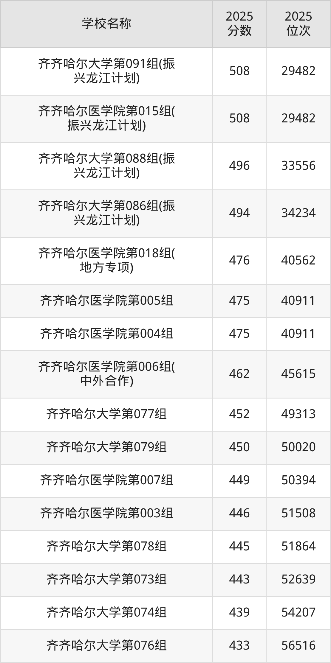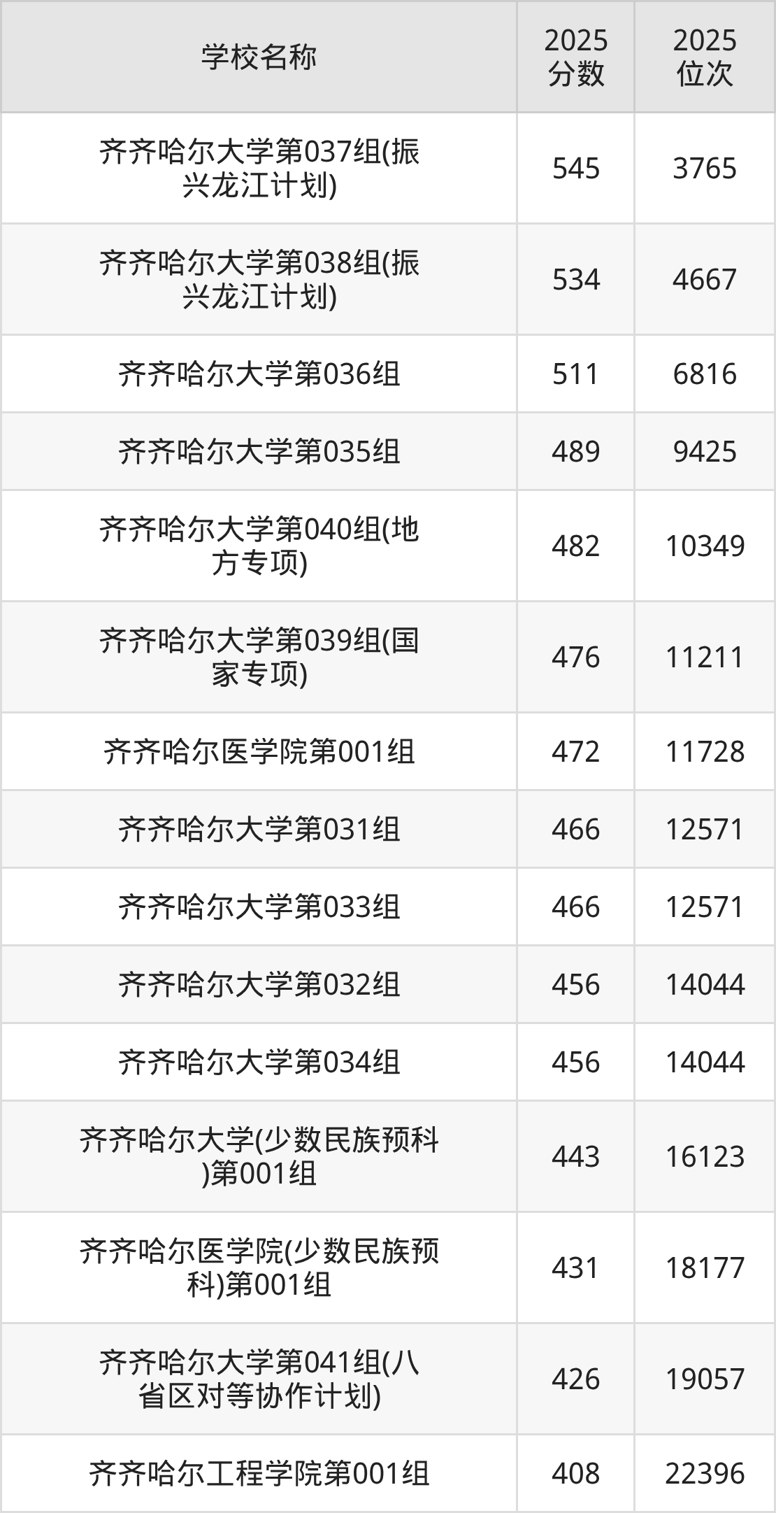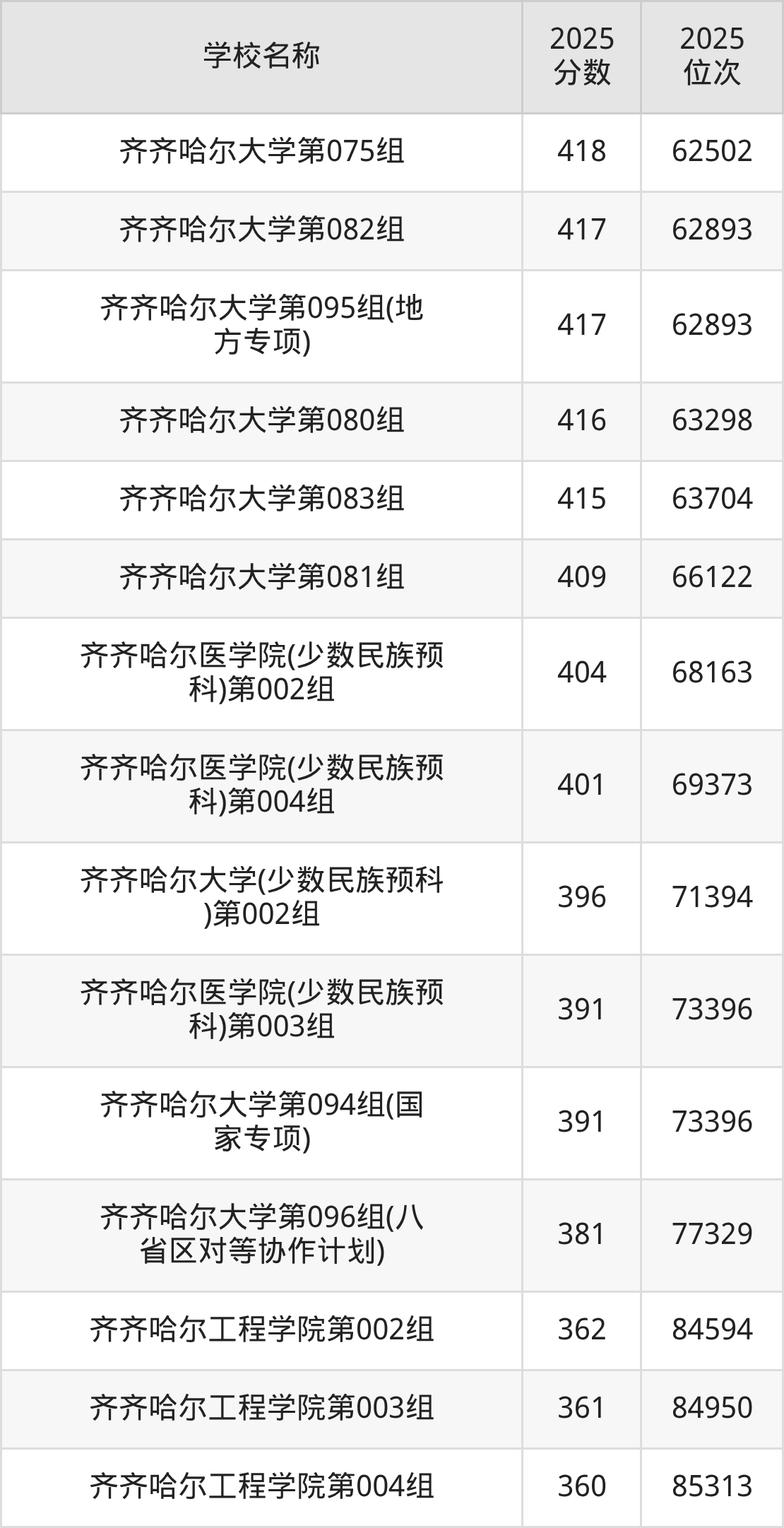 下文为2025年齐齐哈尔市本科大学在黑龙江历史类录取分数线和位次排名表,供大家参考: