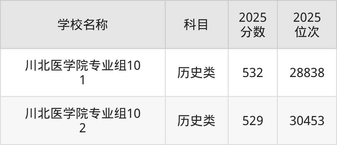 下文为2025年南充市医科大学在四川历史类录取分数线和位次排名表,供大家参考: