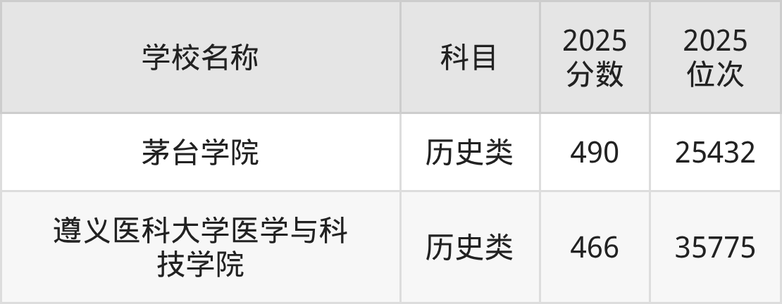 下文为2025年遵义市民办二本大学在贵州历史类录取分数线和位次排名表,供大家参考: