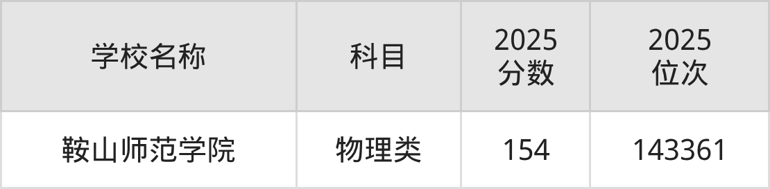 下文为2025年鞍山市师范类大学在辽宁物理类录取分数线和位次排名表,供大家参考: