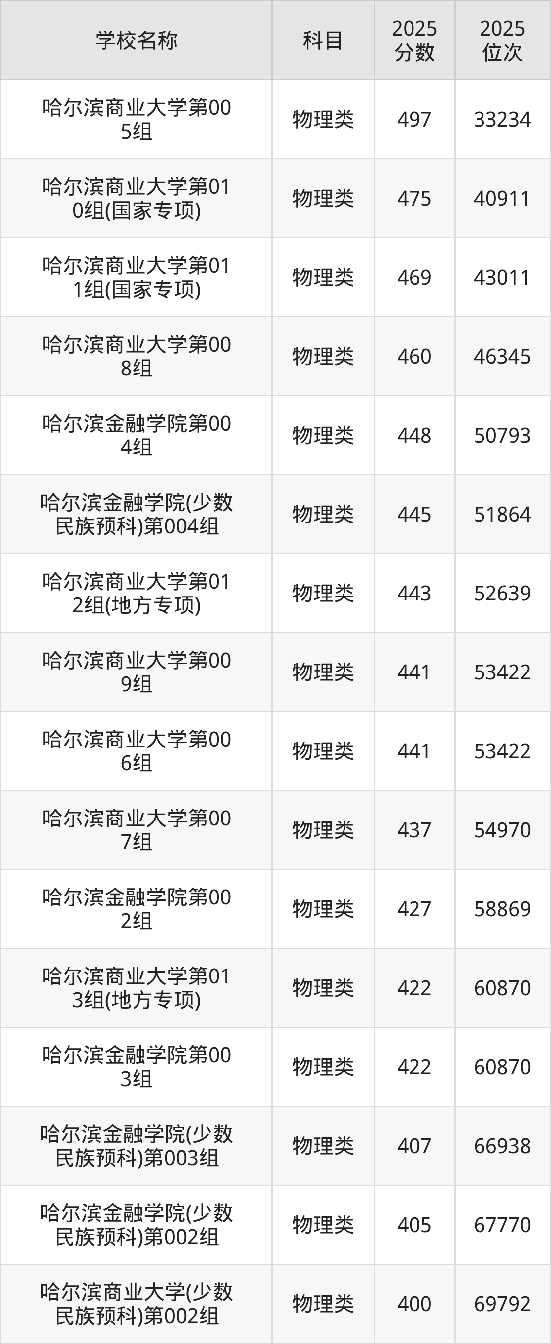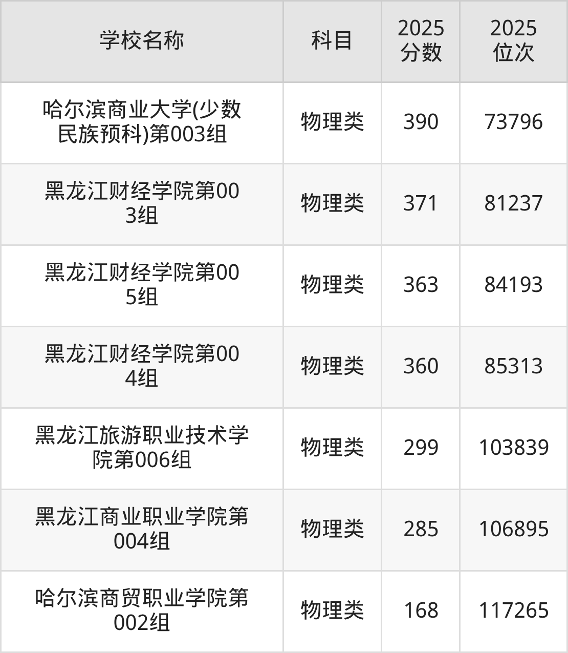 下文为2025年黑龙江省财经类大学在黑龙江物理类录取分数线和位次排名表,供大家参考: