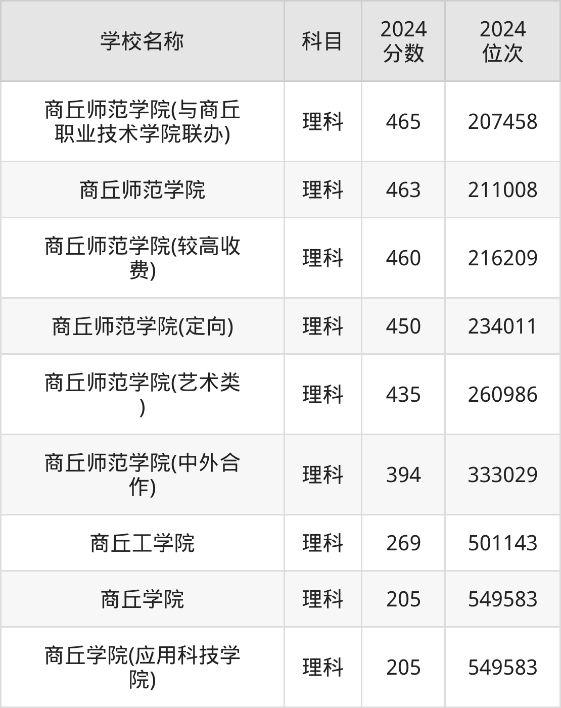 下文为2024年商丘市本科大学在河南理科录取分数线和位次排名表,供大家参考: