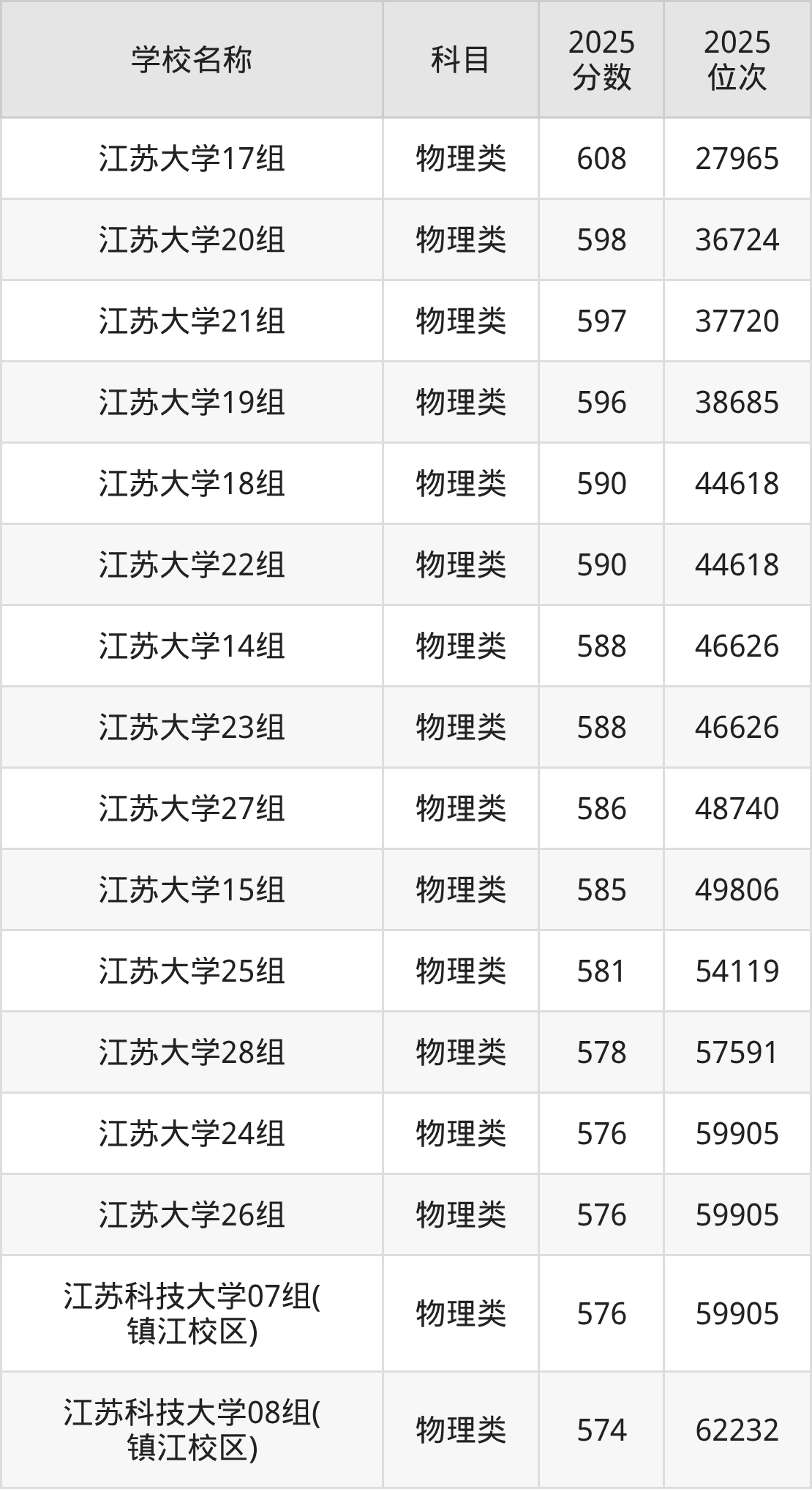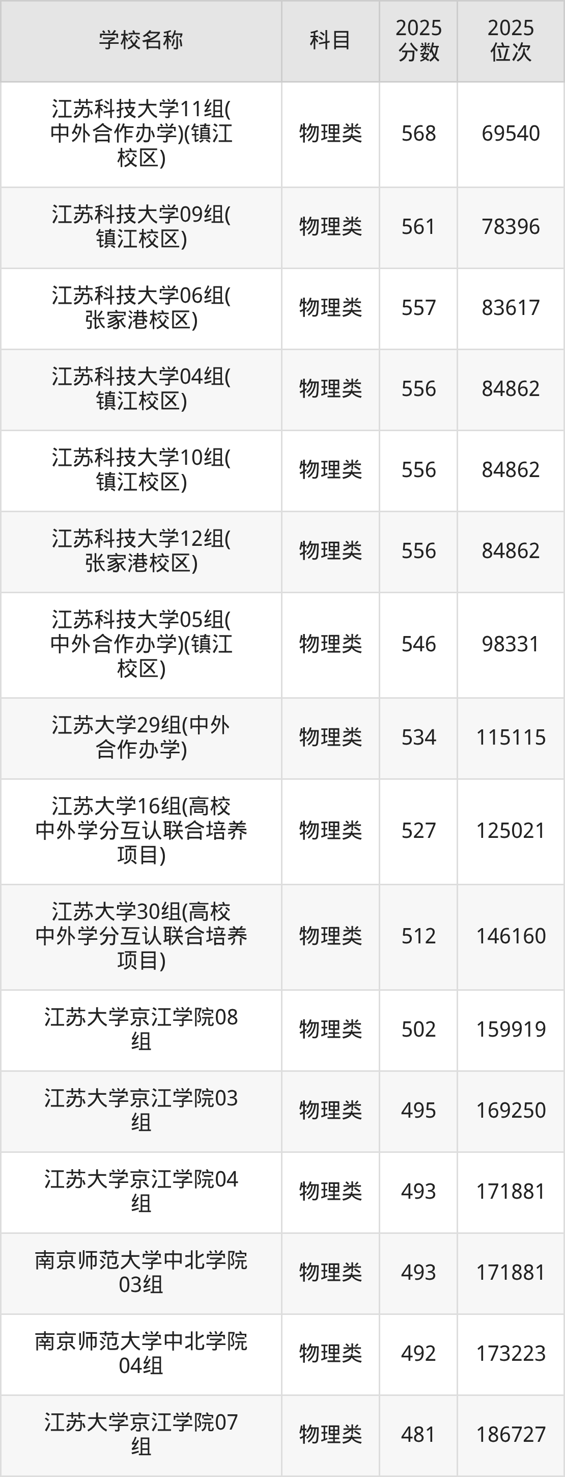下文为2025年镇江市本科大学在江苏物理类录取分数线和位次排名表,供大家参考: