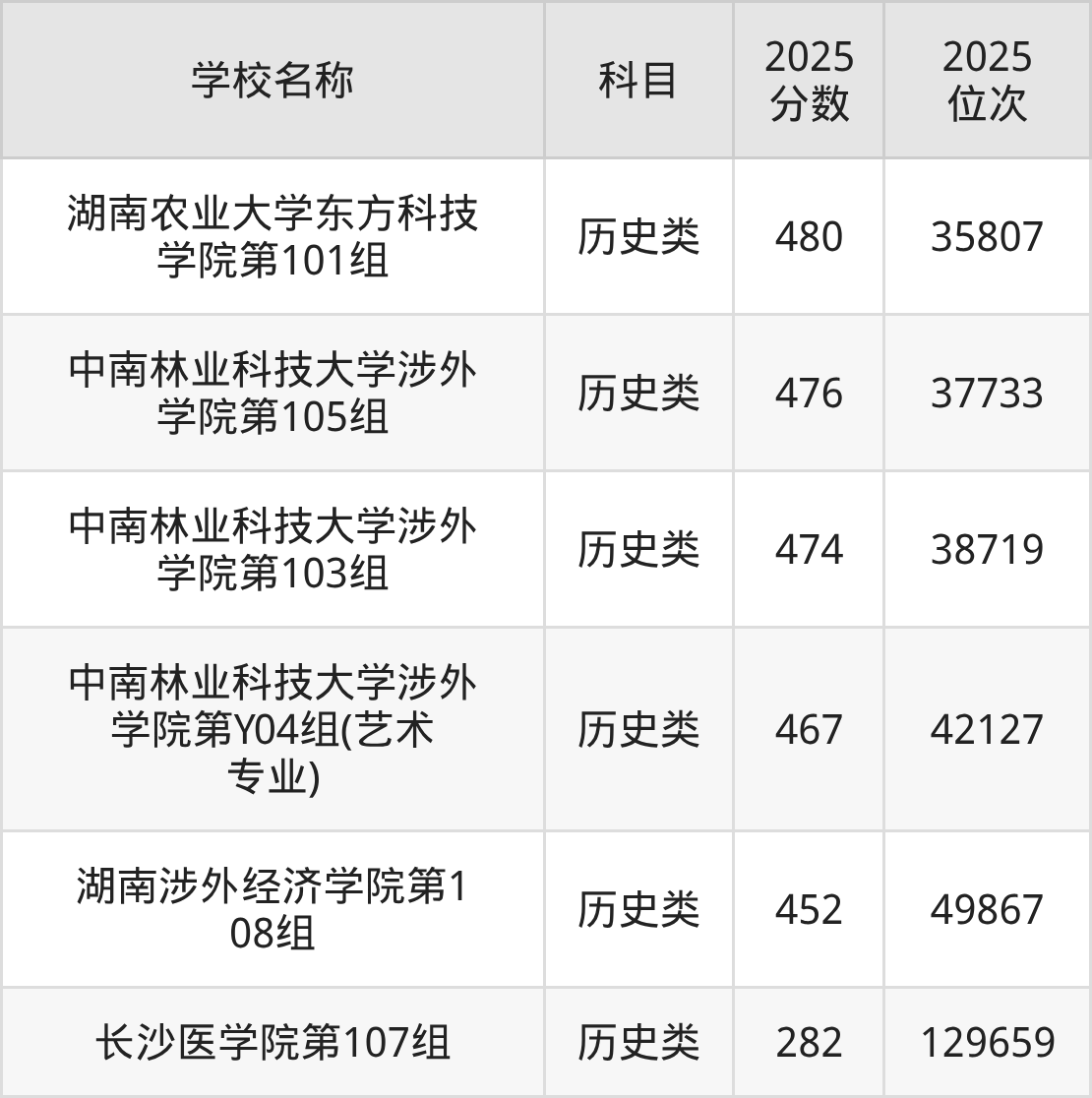 下文为2025年长沙市民办二本大学在湖南历史类录取分数线和位次排名表,供大家参考: