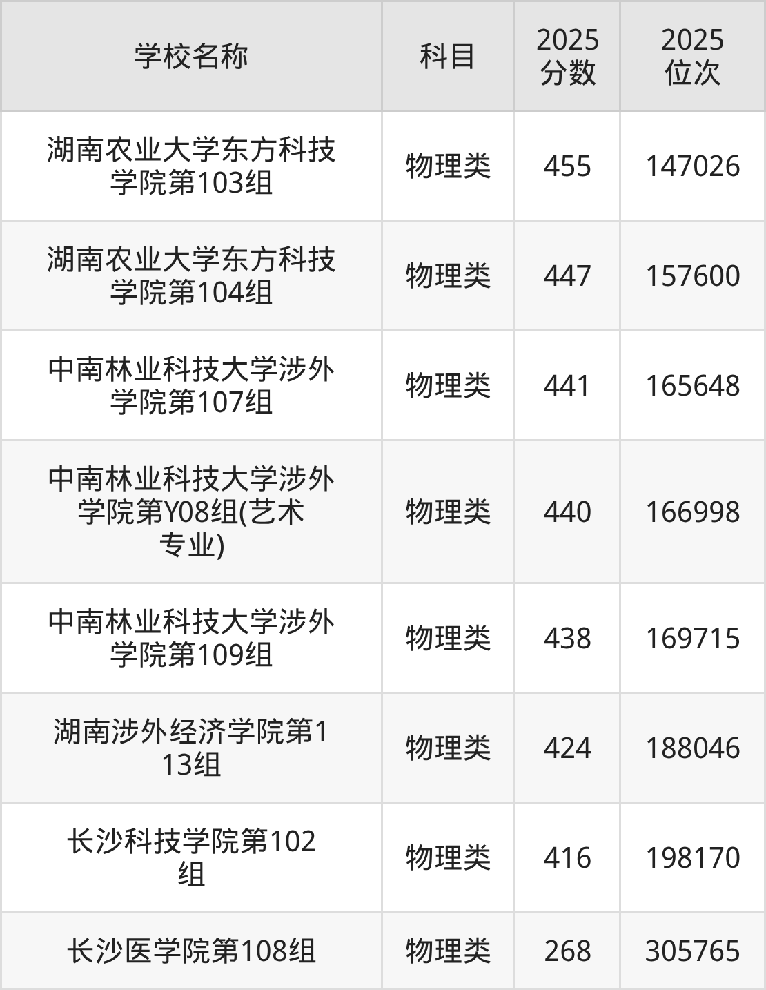 下文为2025年长沙市民办二本大学在湖南物理类录取分数线和位次排名表,供大家参考: