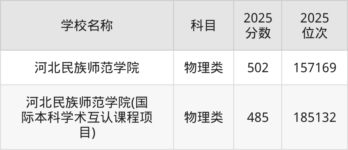 下文为2025年承德市师范类大学在河北历史类录取分数线和位次排名表,供大家参考: