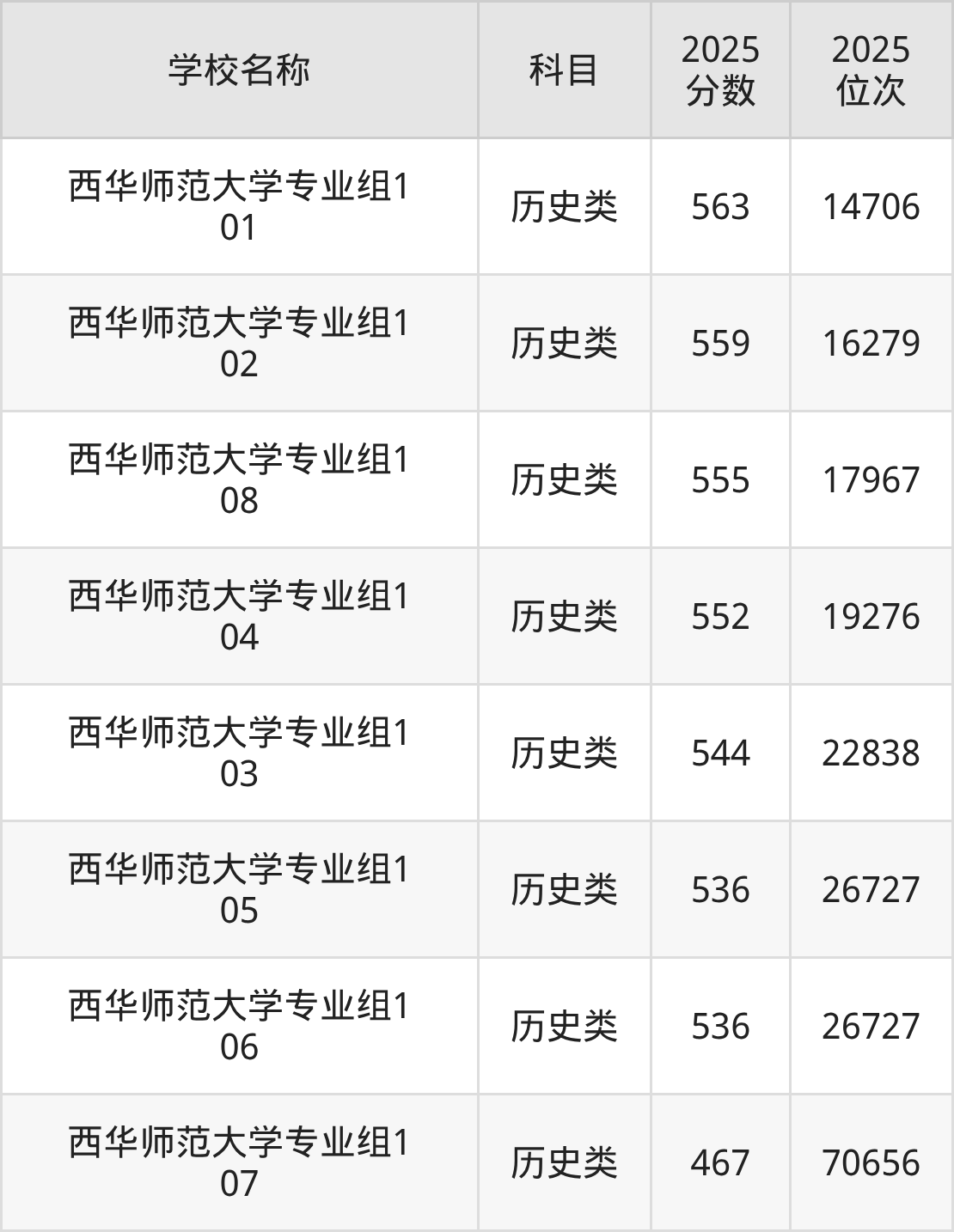 下文为2025年南充市一本大学在四川历史类录取分数线和位次排名表,供大家参考: