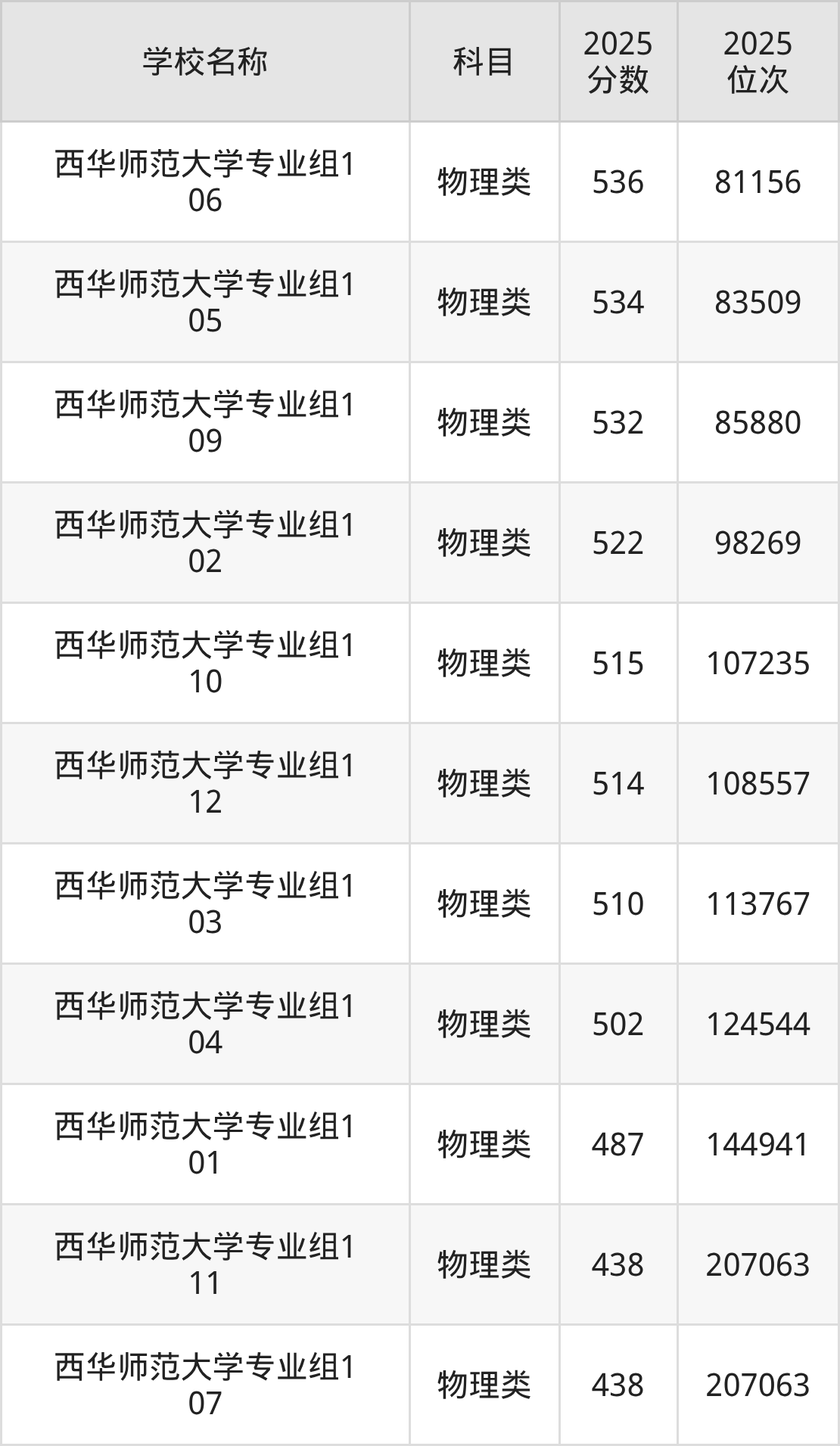 下文为2025年南充市一本大学在四川物理类录取分数线和位次排名表,供大家参考: